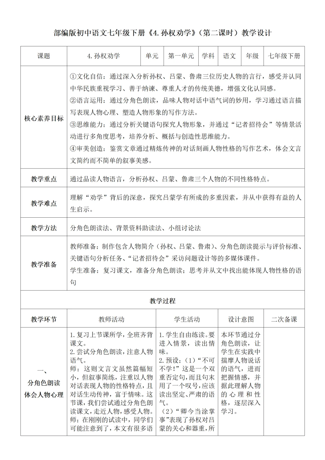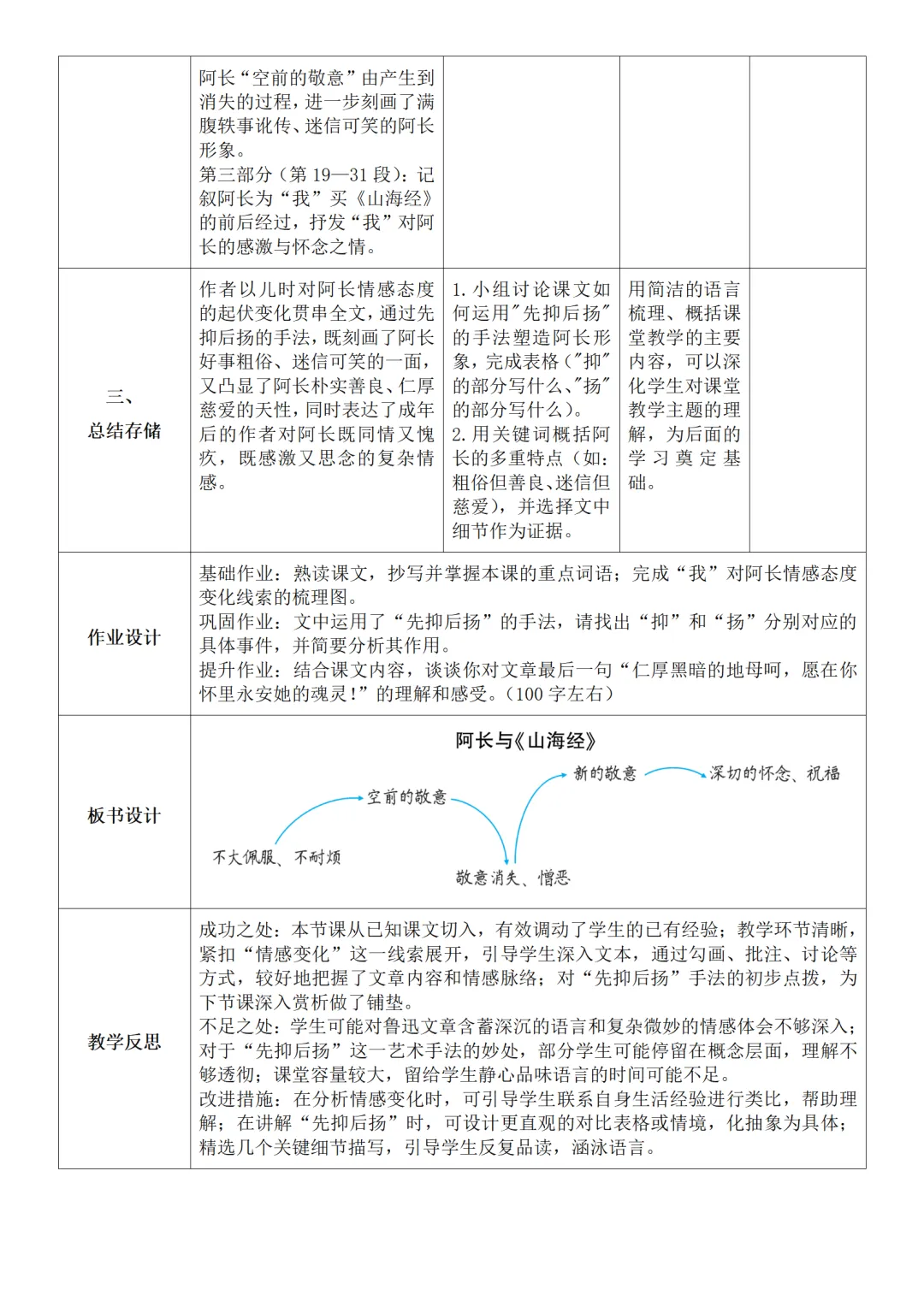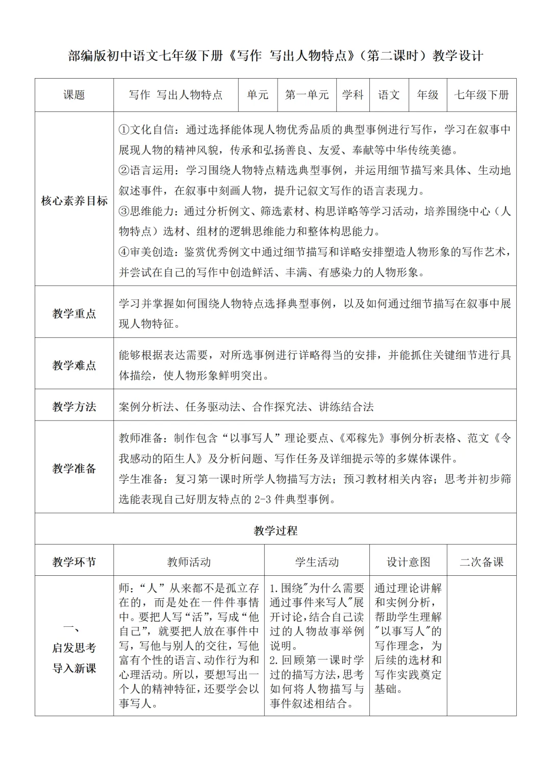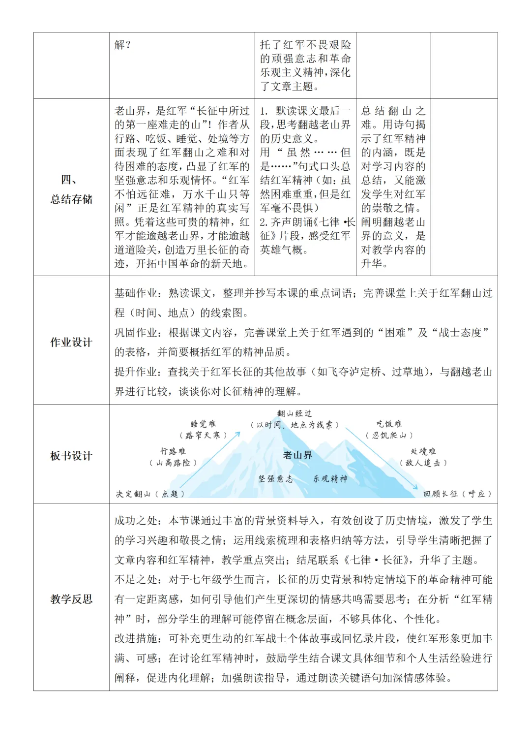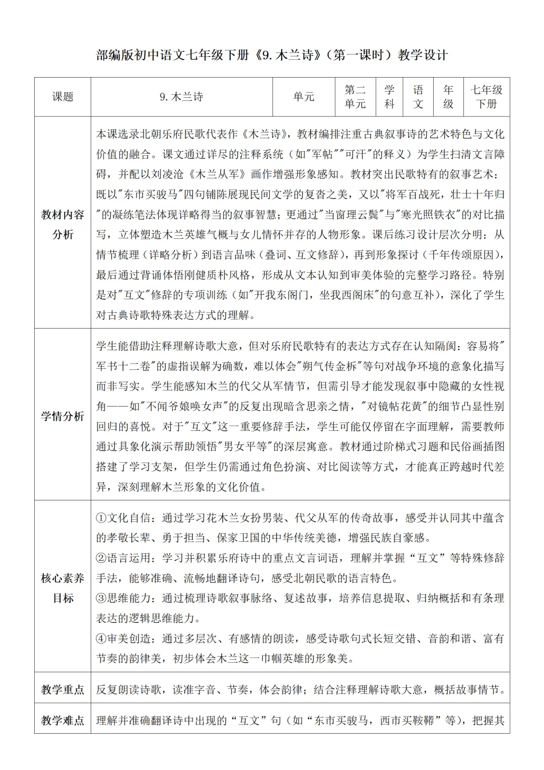 >部编人教版新教材七下语文表格式教案(教学反思有内容)
