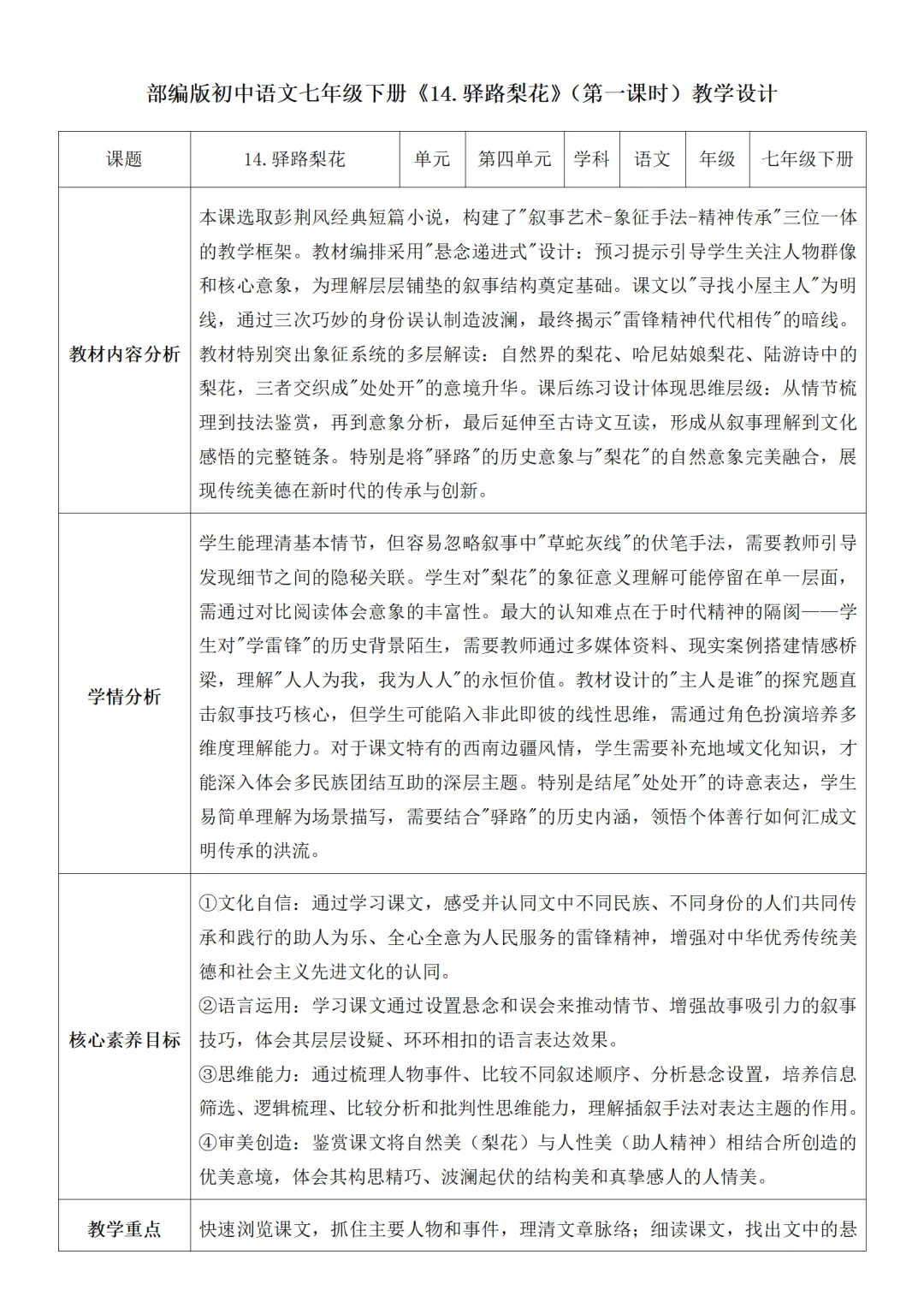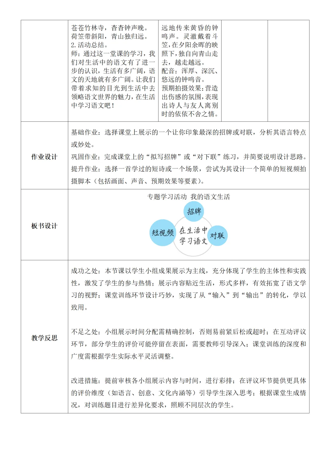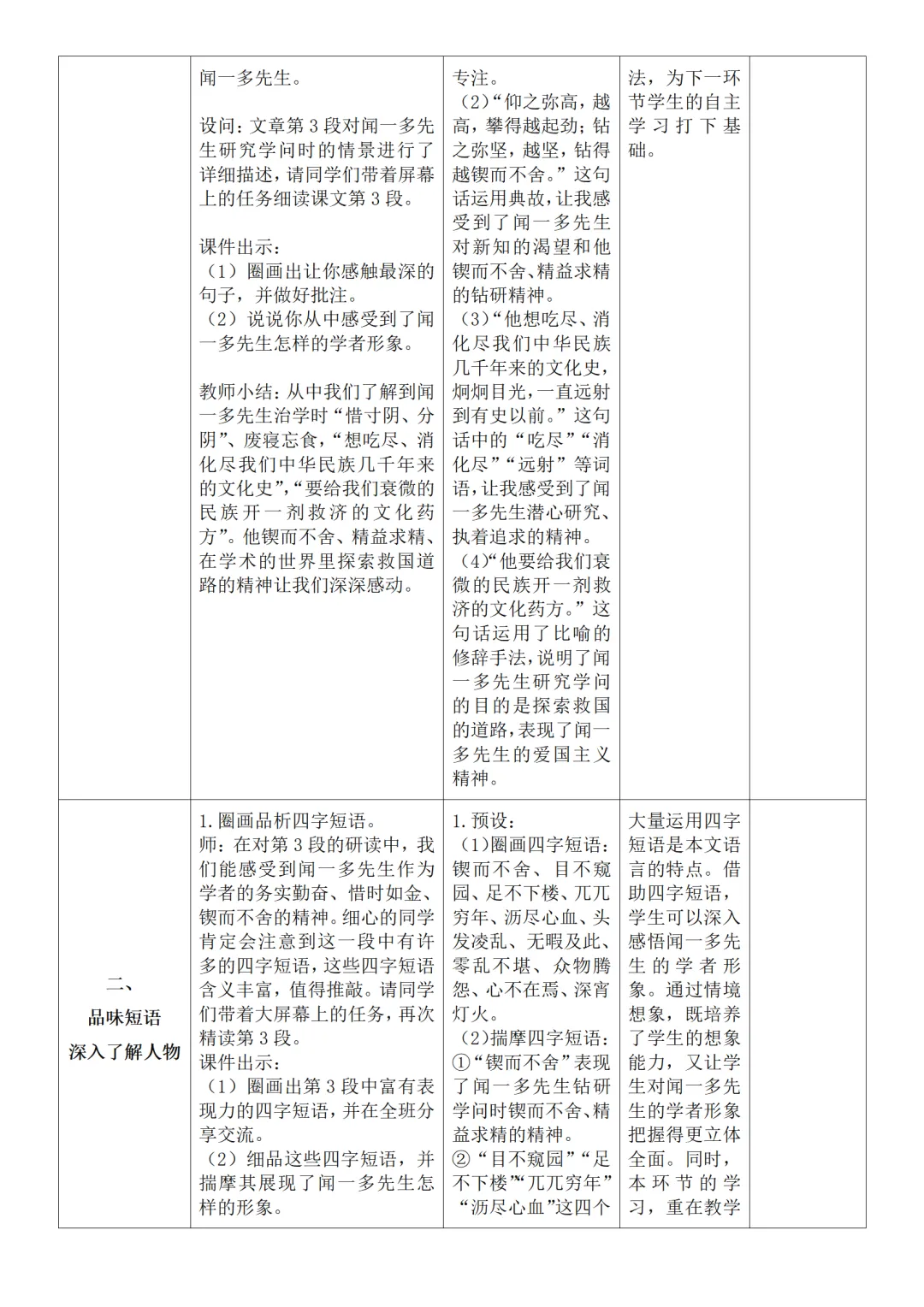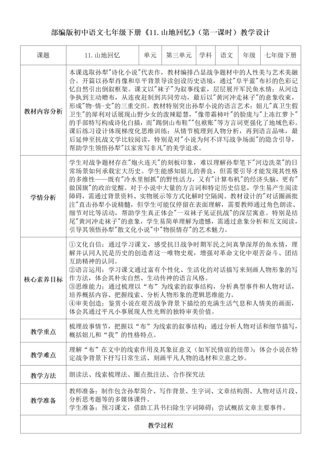 >部编人教版新教材七下语文表格式教案(教学反思有内容)