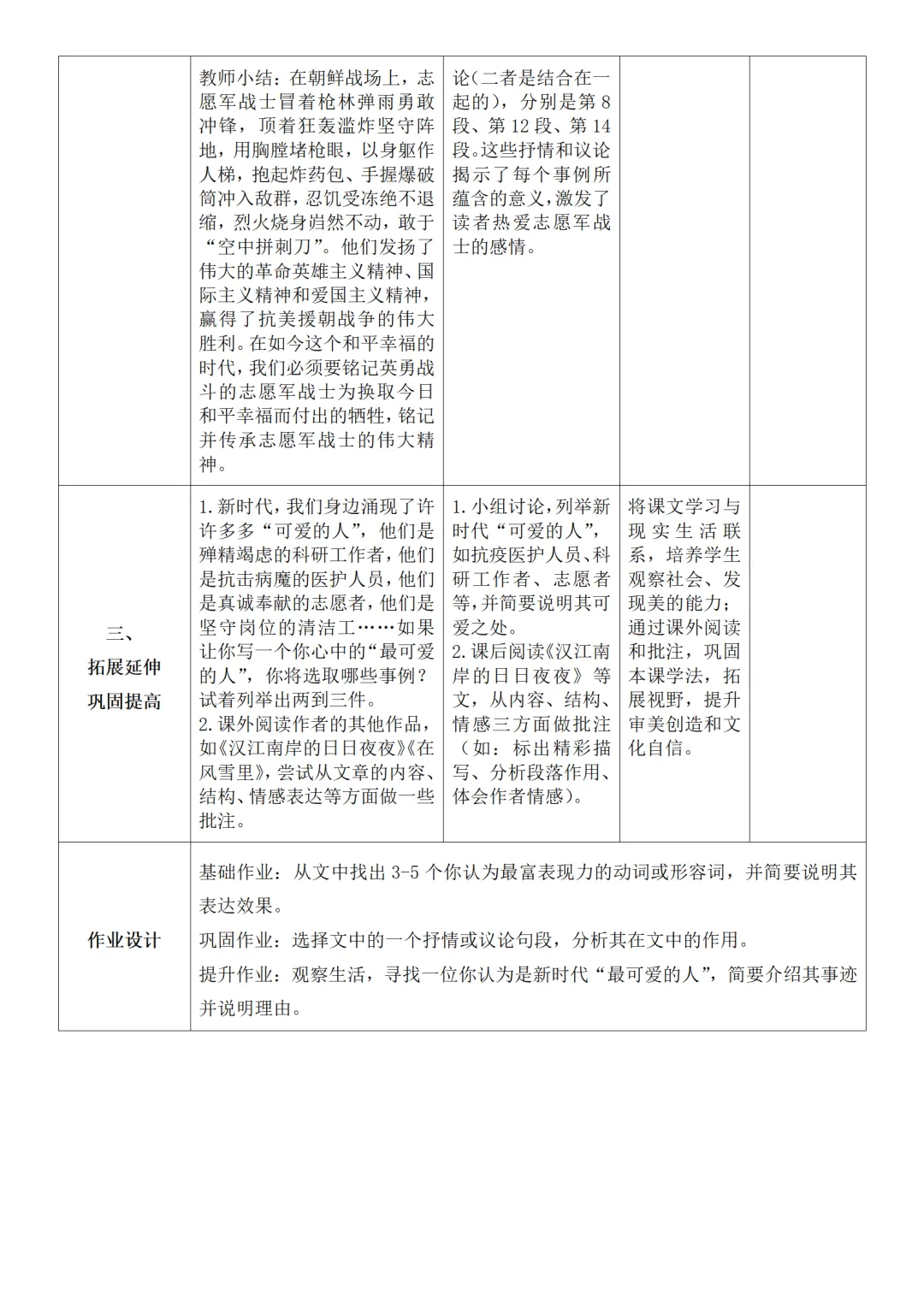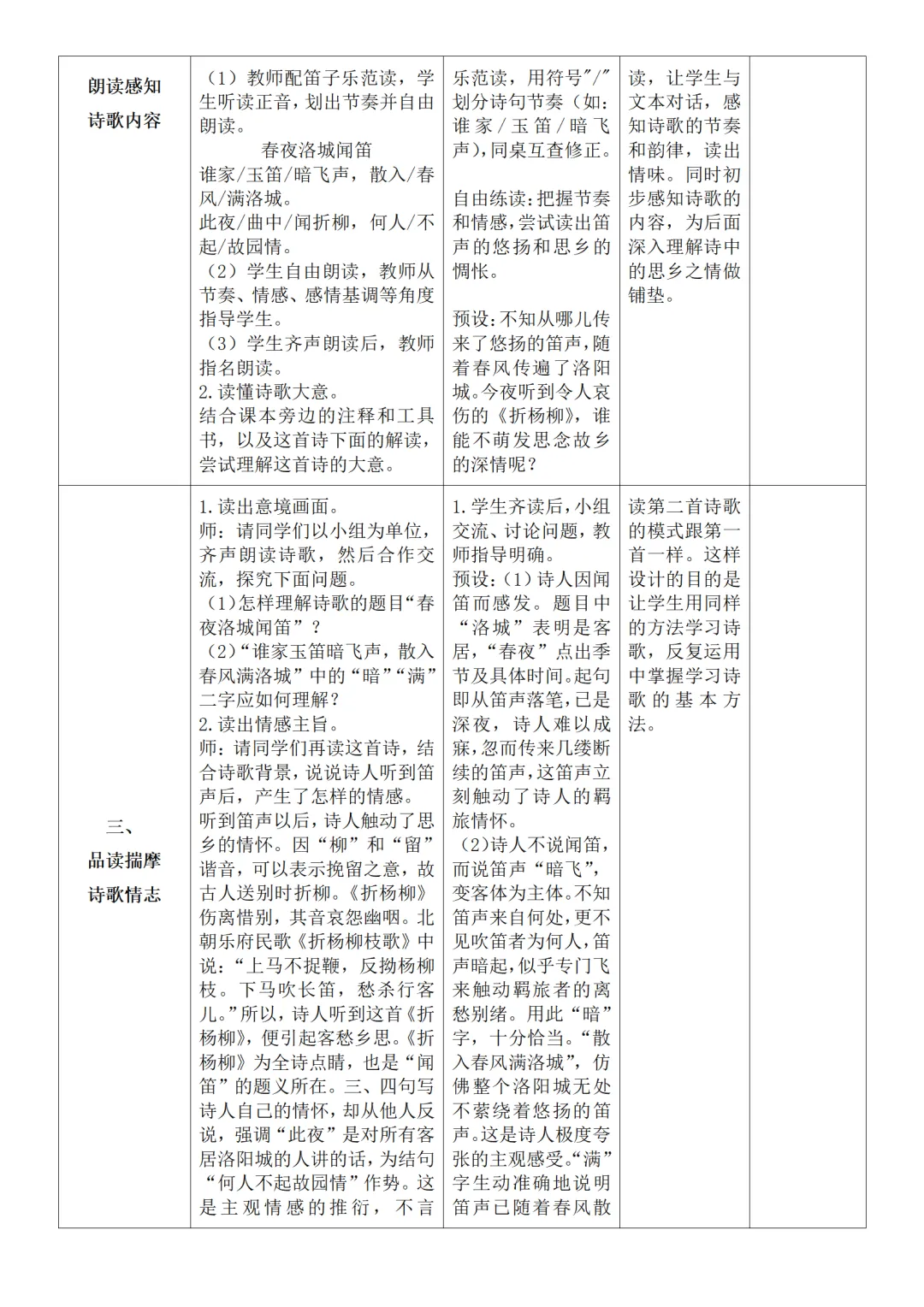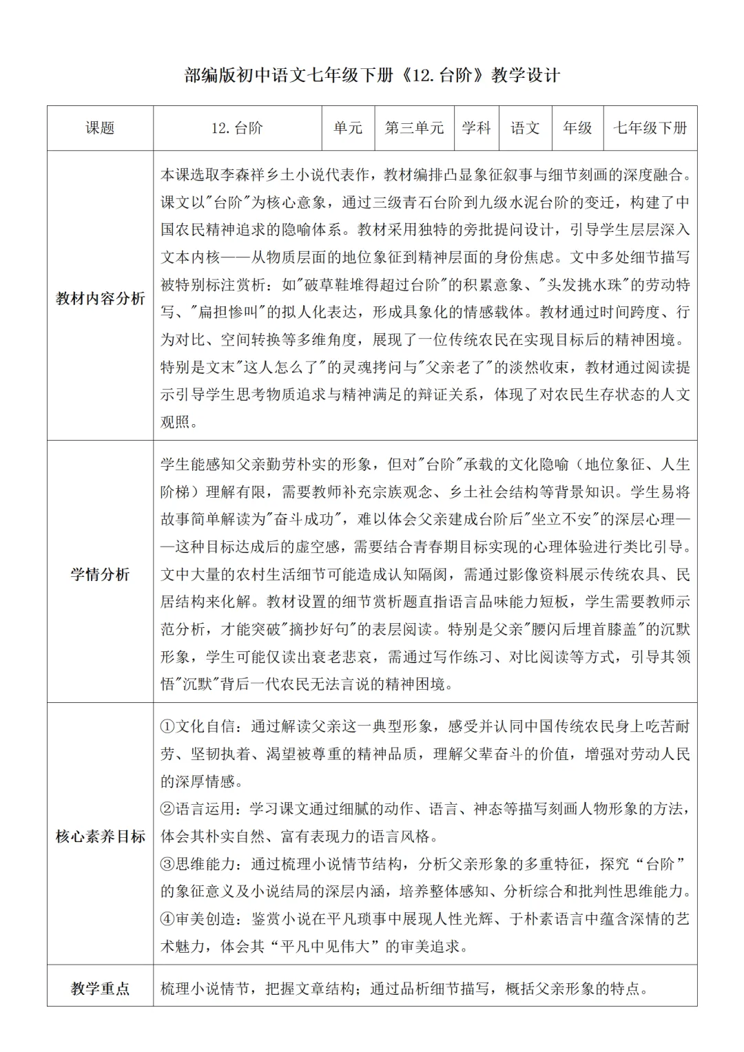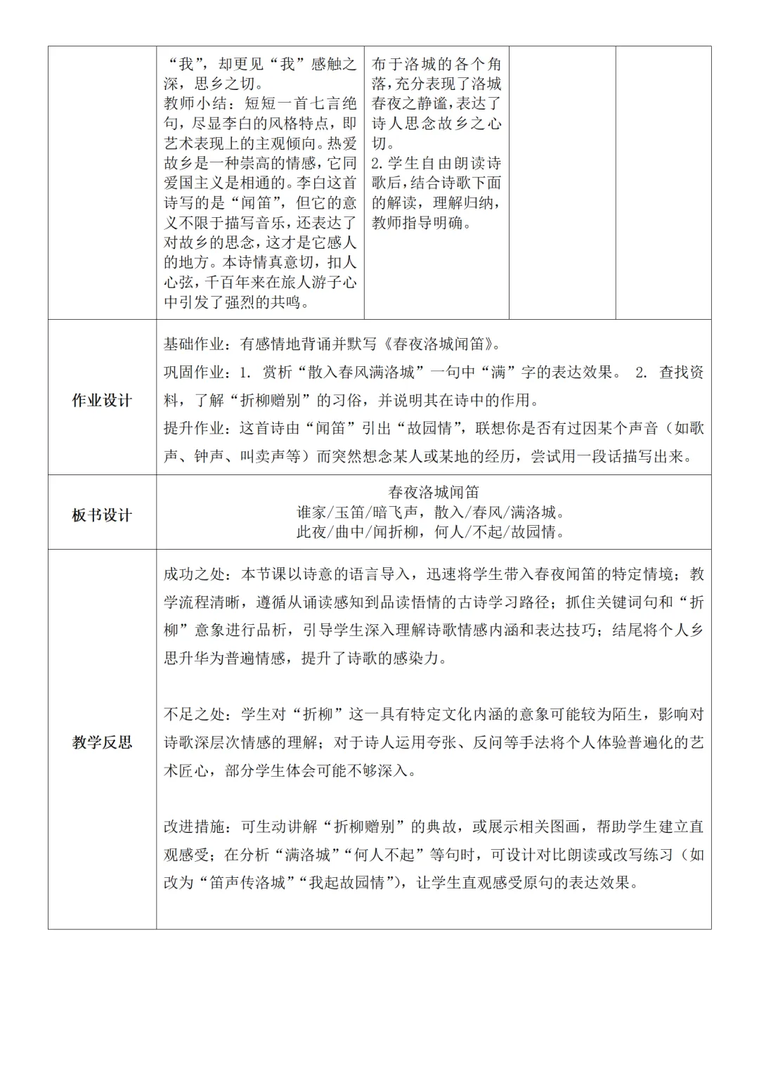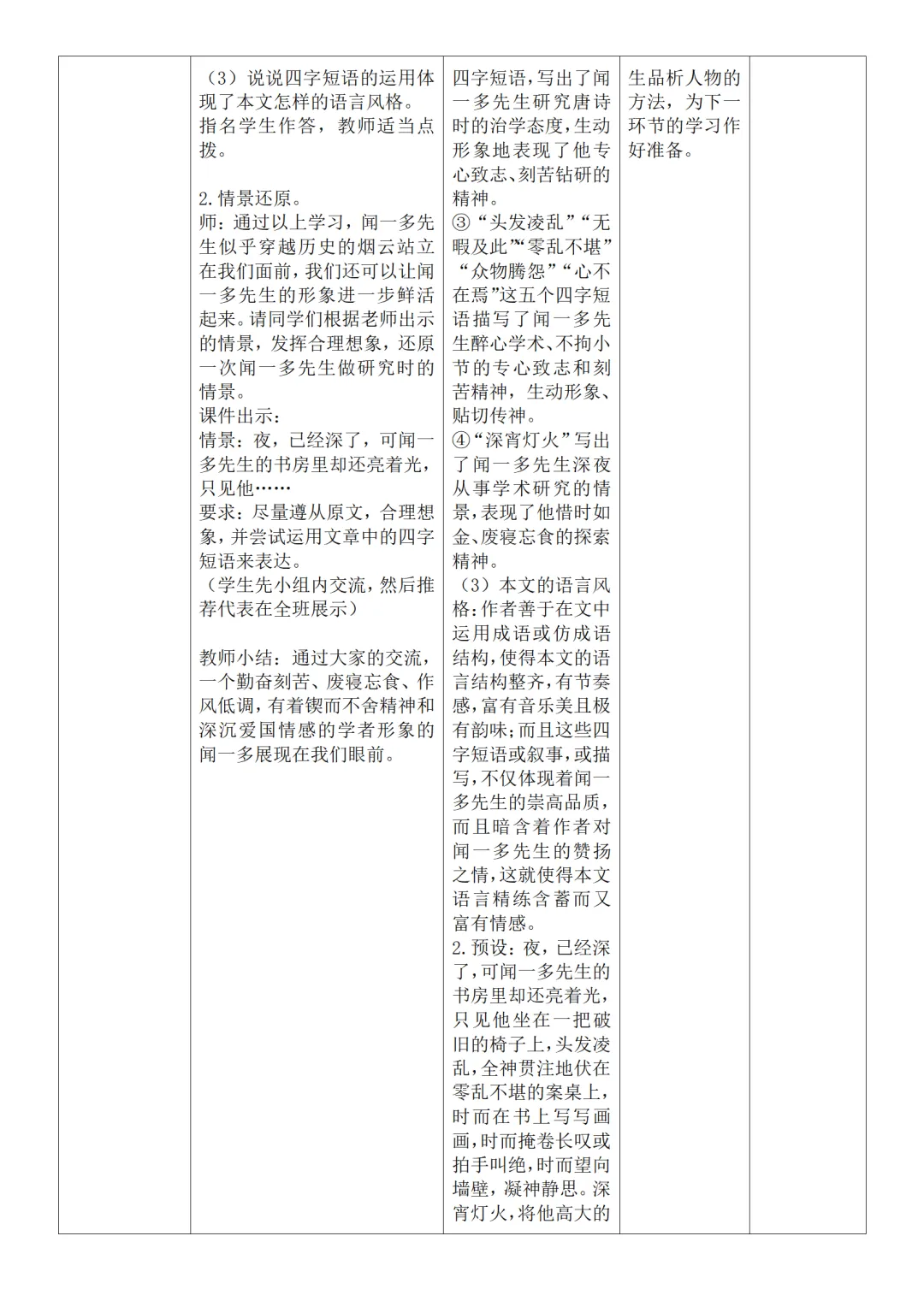 >部编人教版新教材七下语文表格式教案(教学反思有内容)