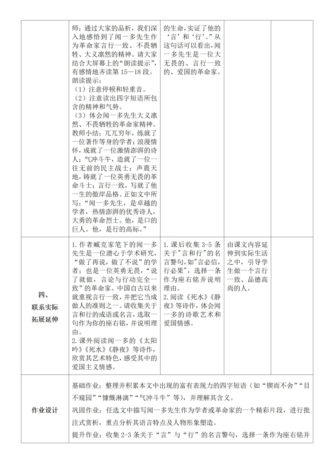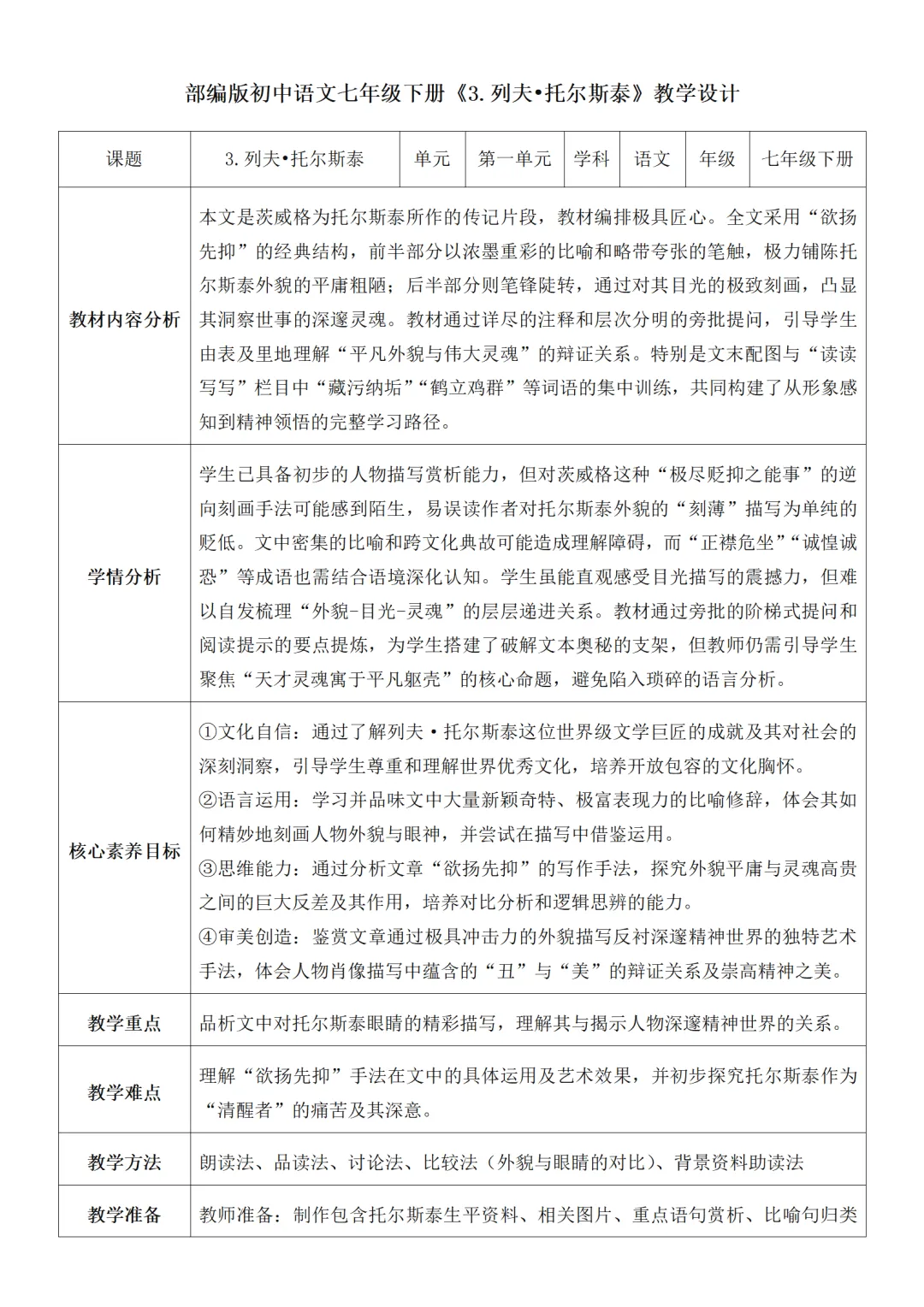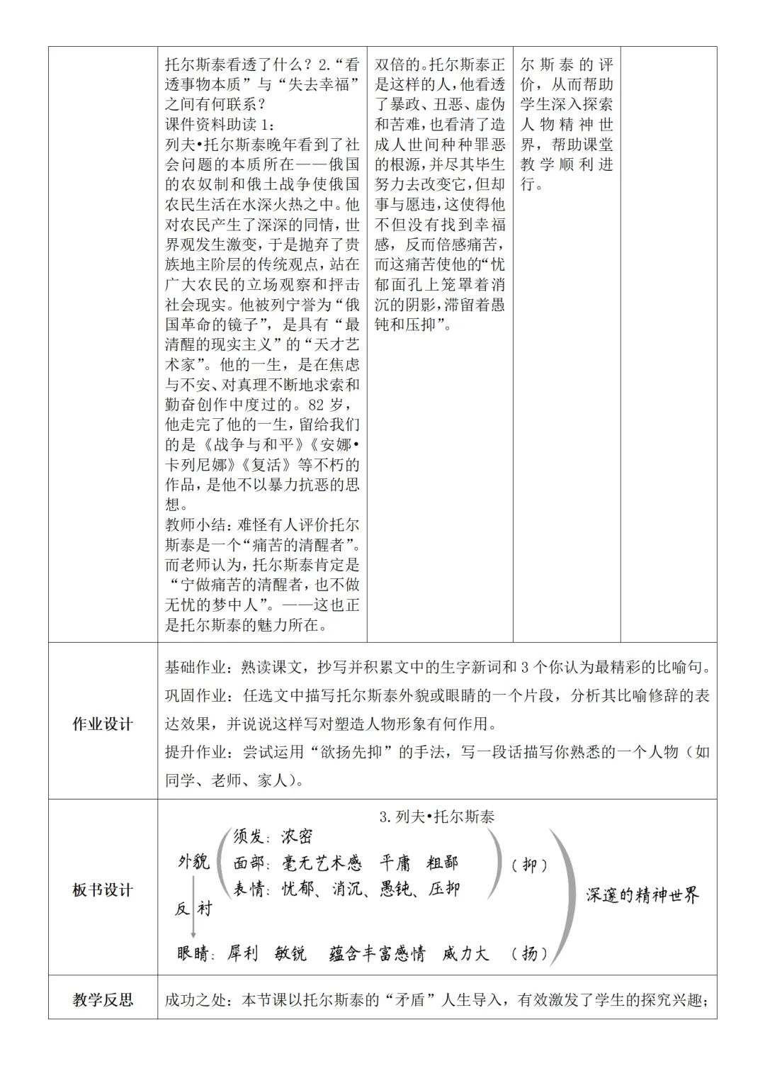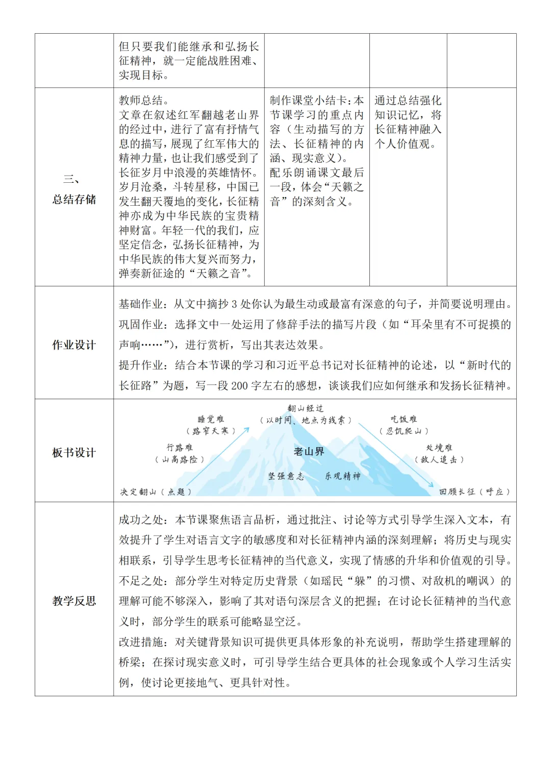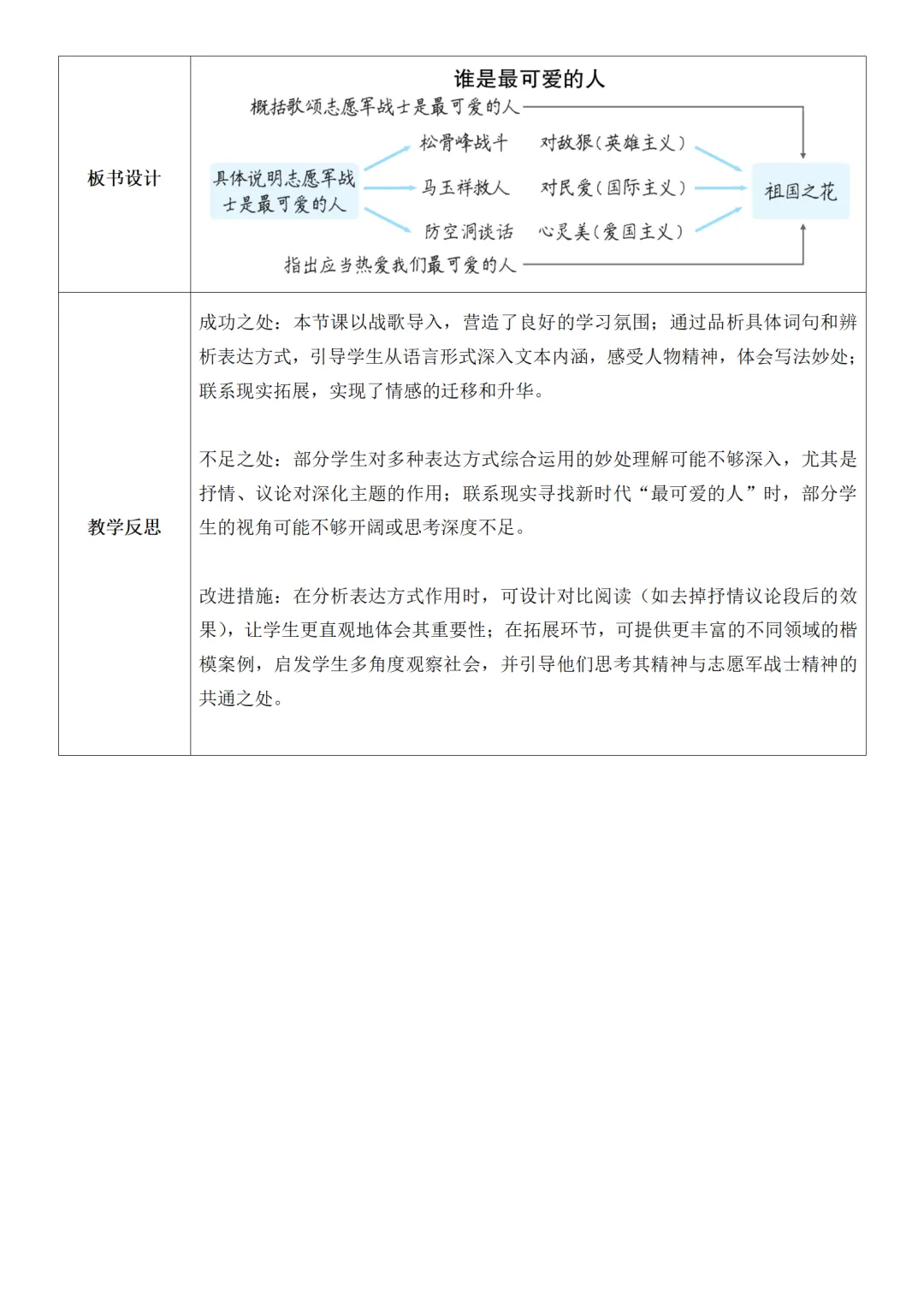 >部编人教版新教材七下语文表格式教案(教学反思有内容)