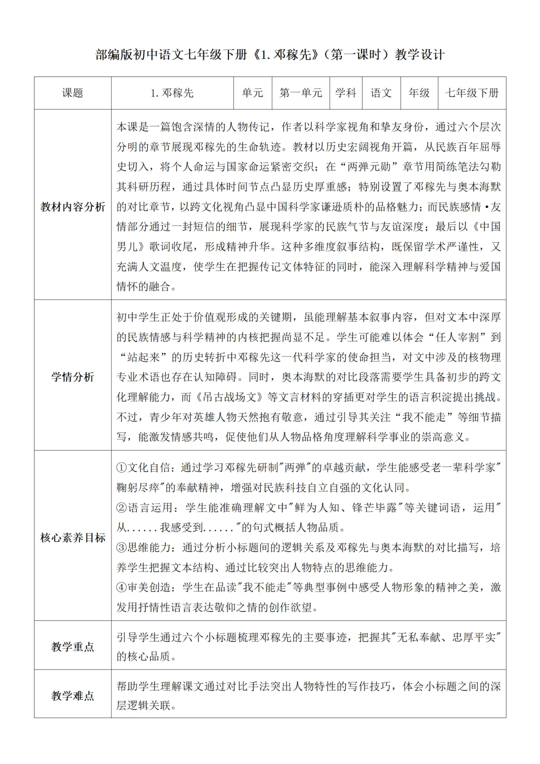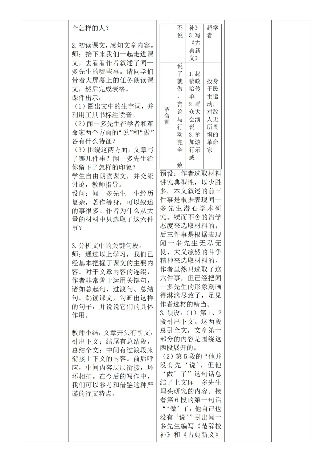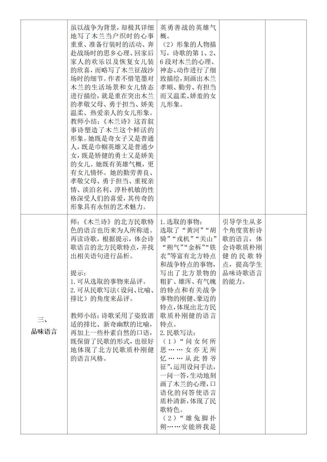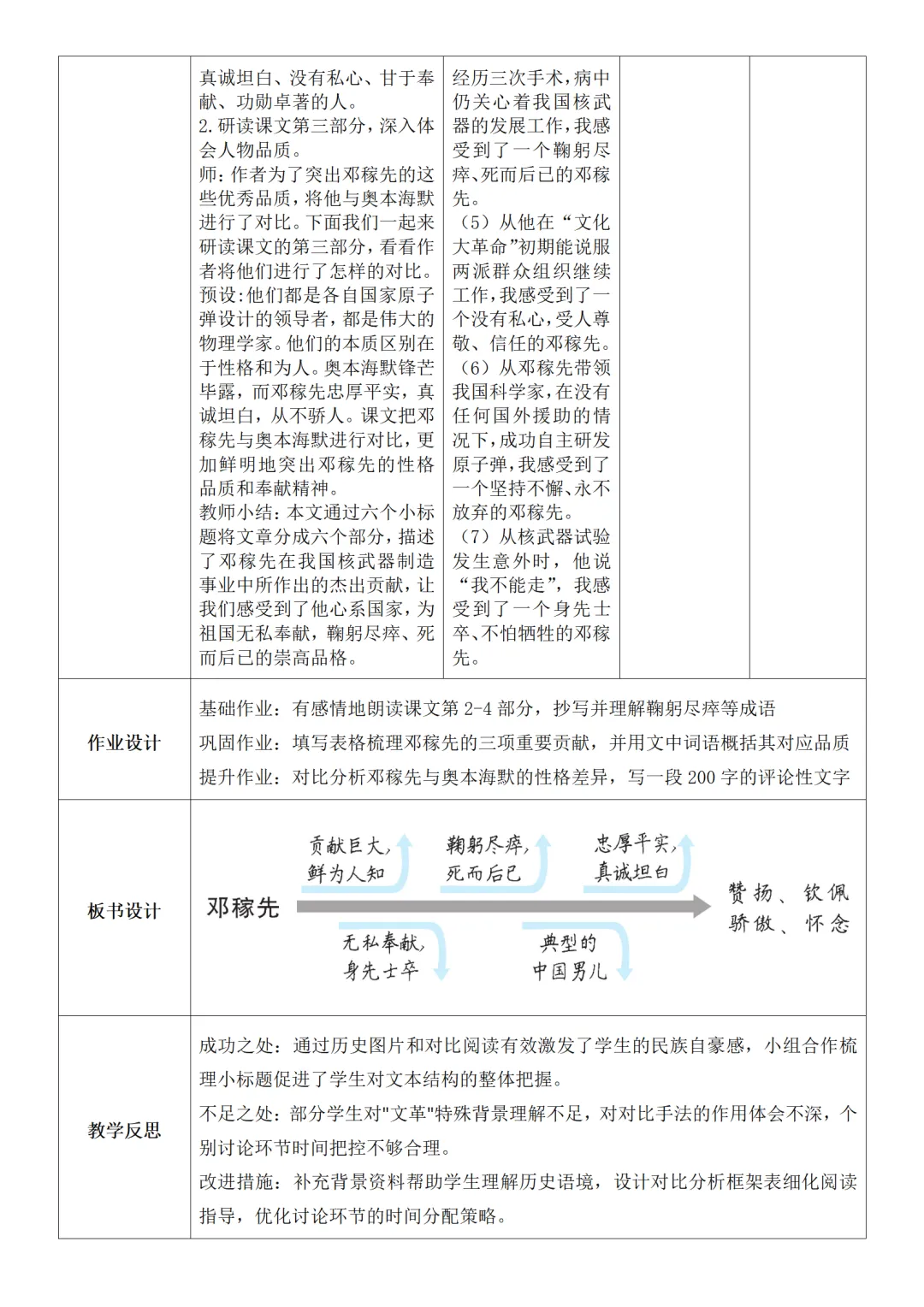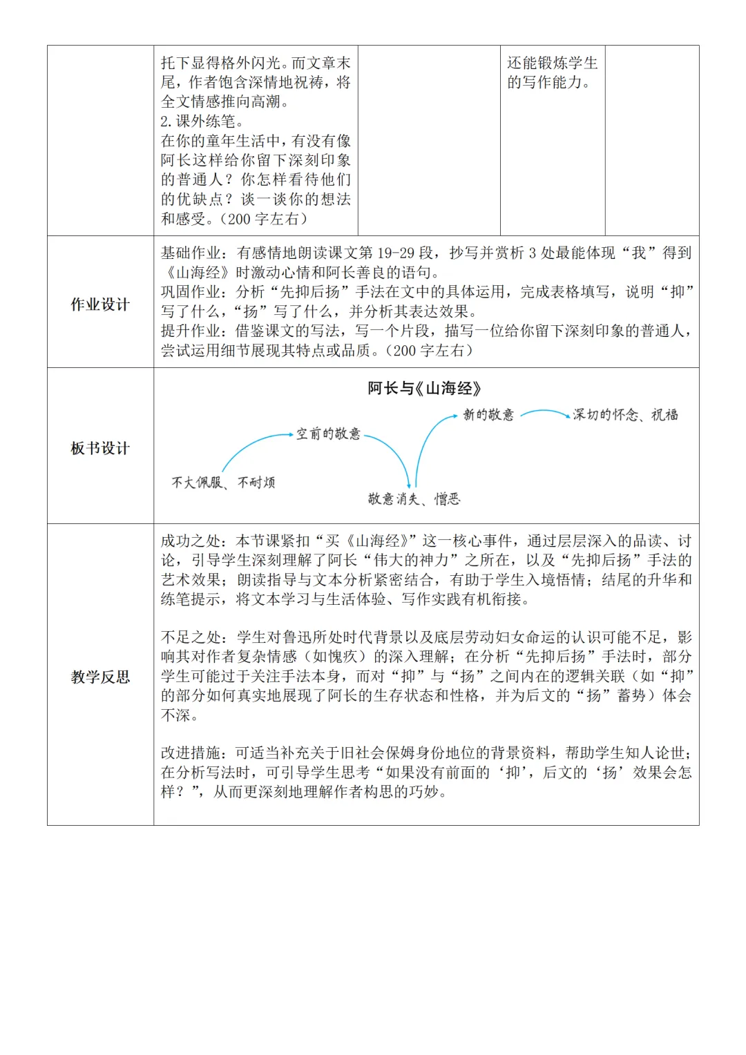 >部编人教版新教材七下语文表格式教案(教学反思有内容)