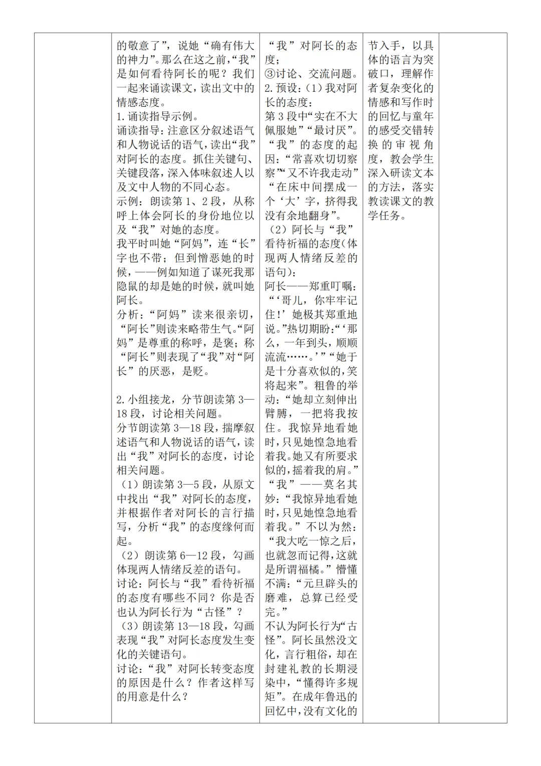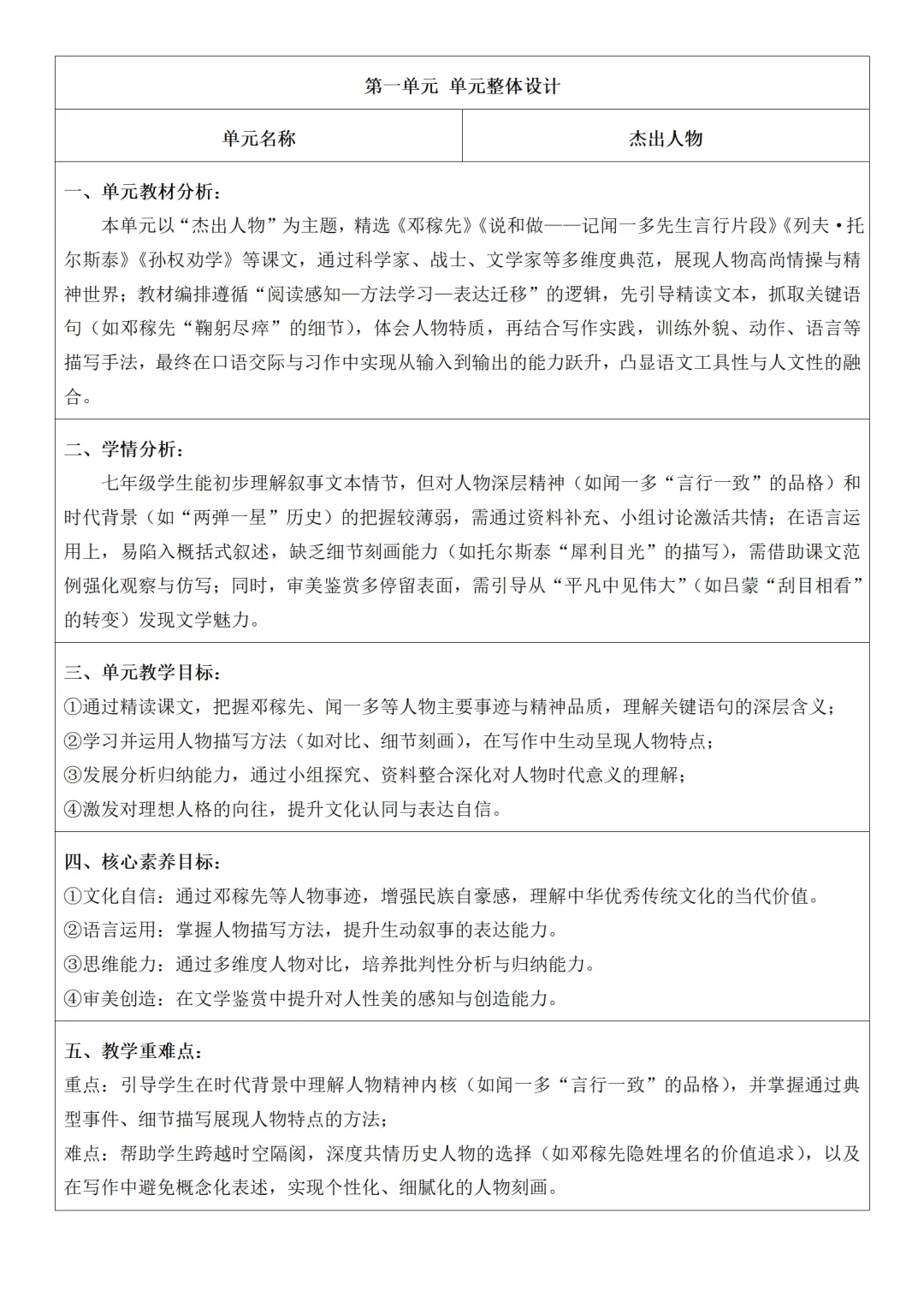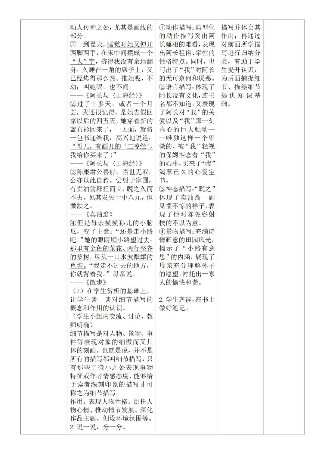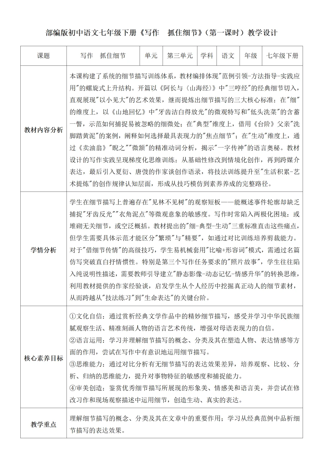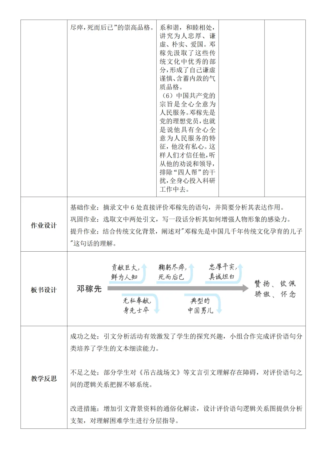 >部编人教版新教材七下语文表格式教案(教学反思有内容)
