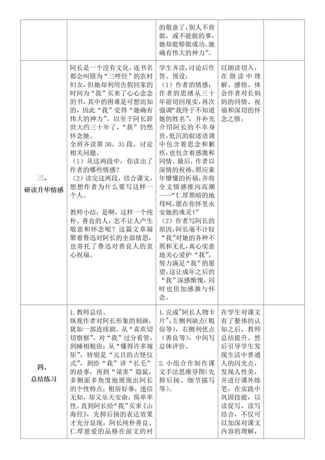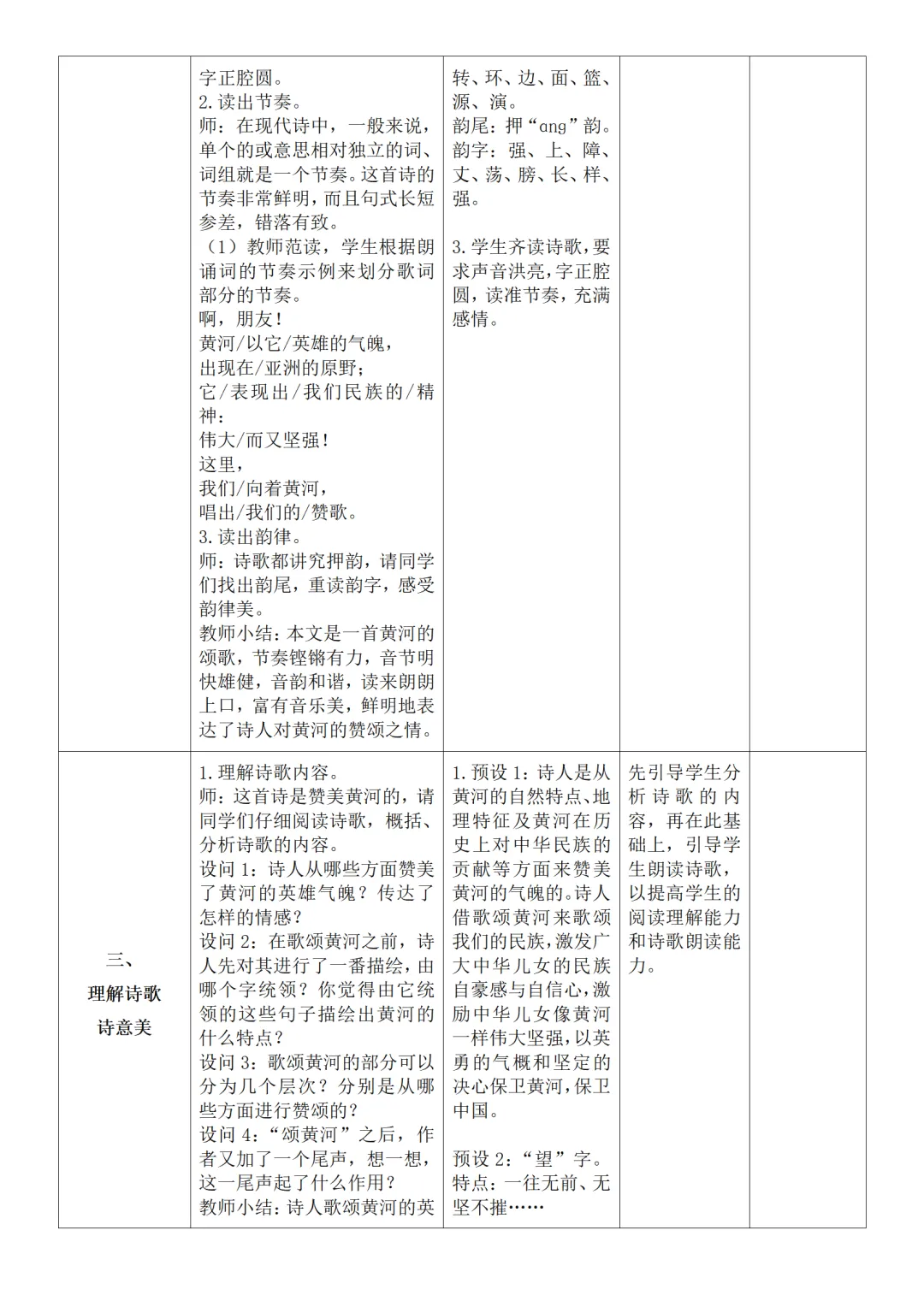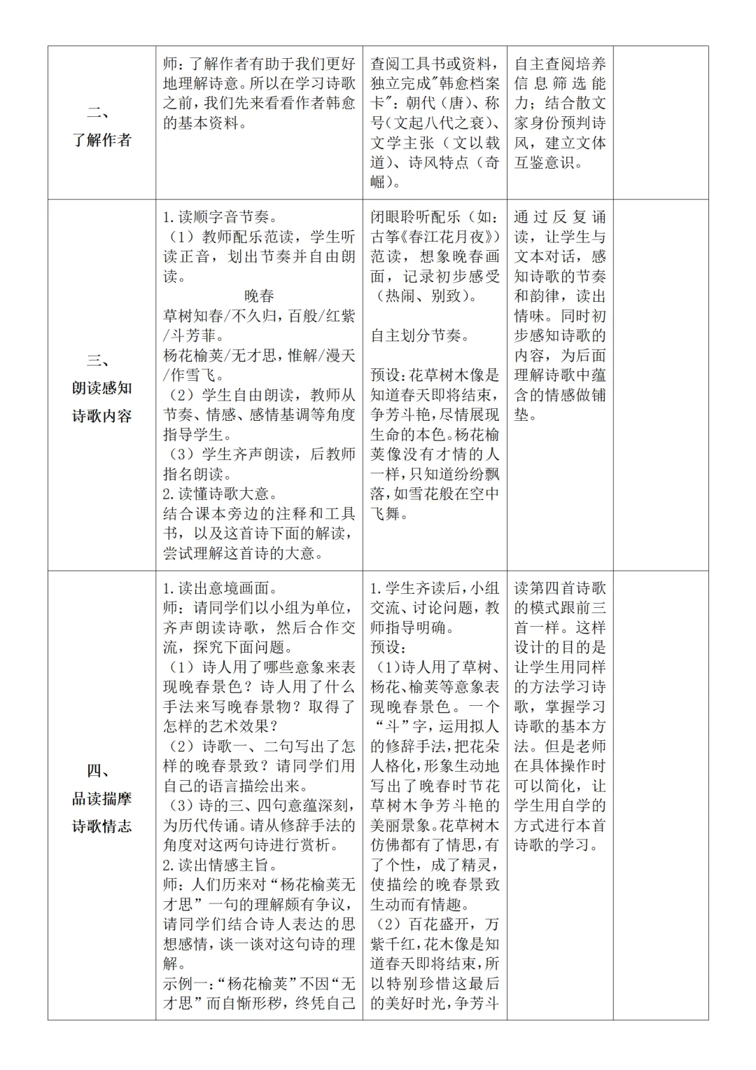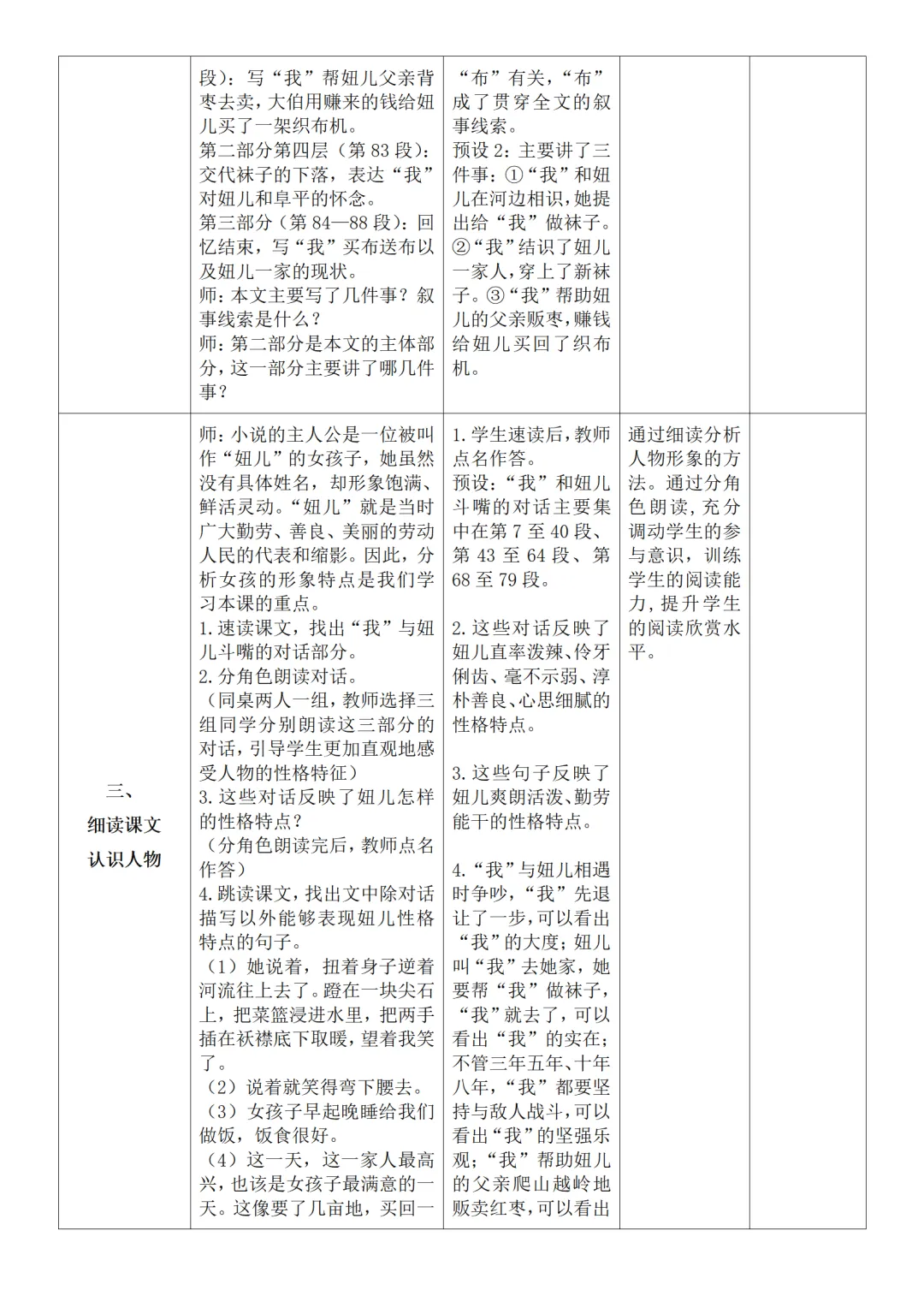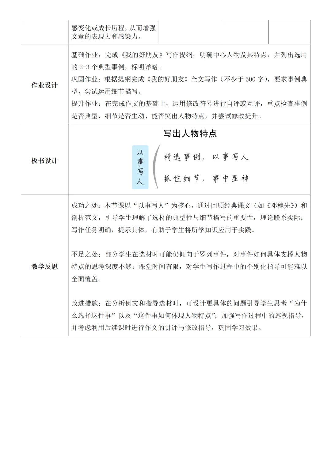>部编人教版新教材七下语文表格式教案(教学反思有内容)