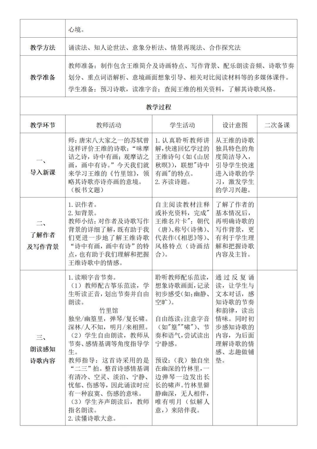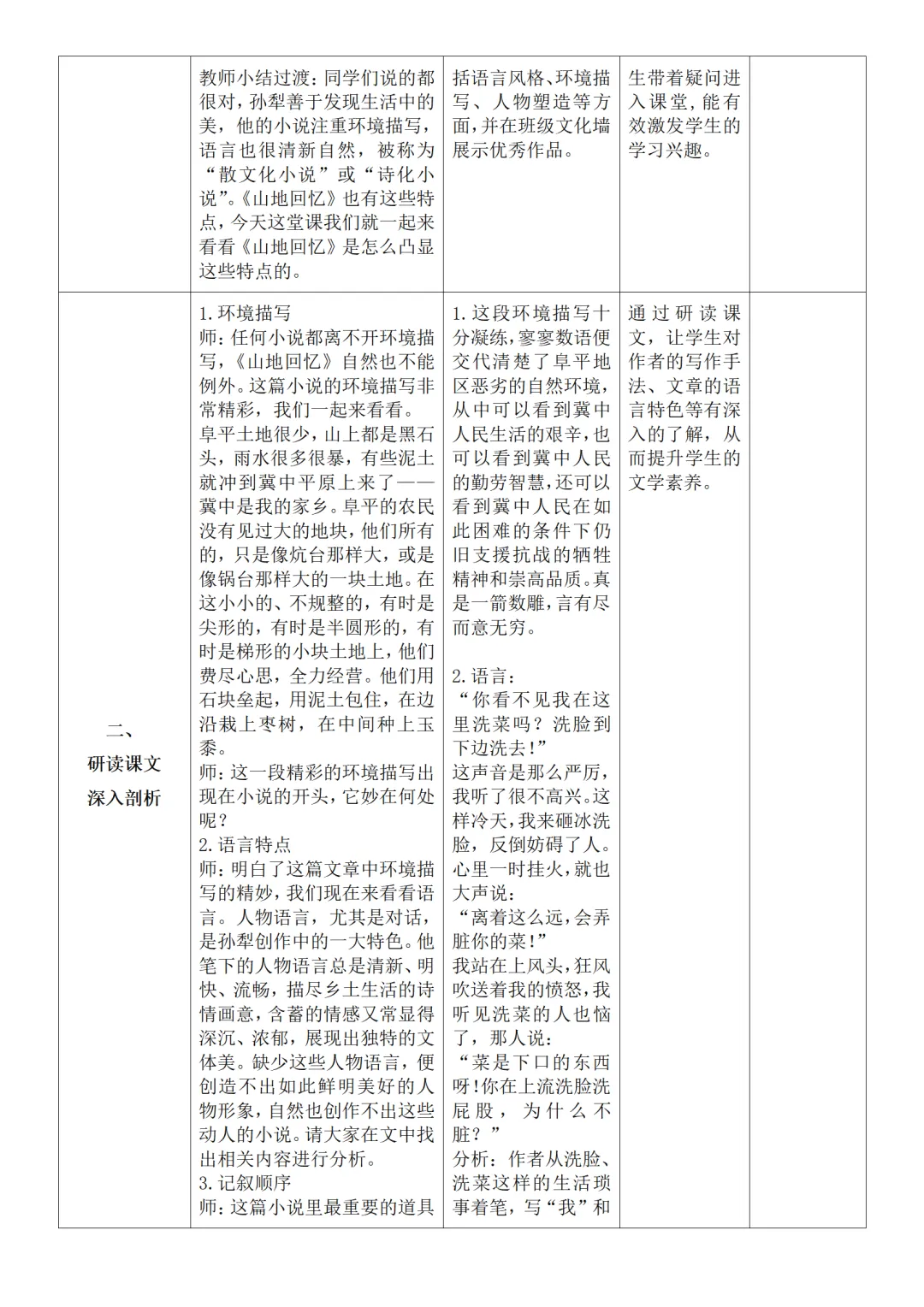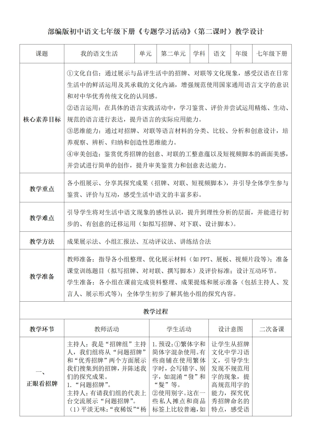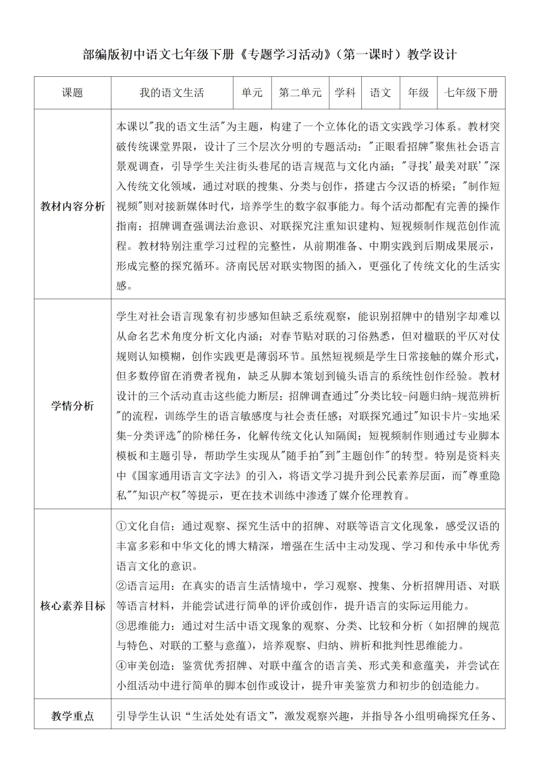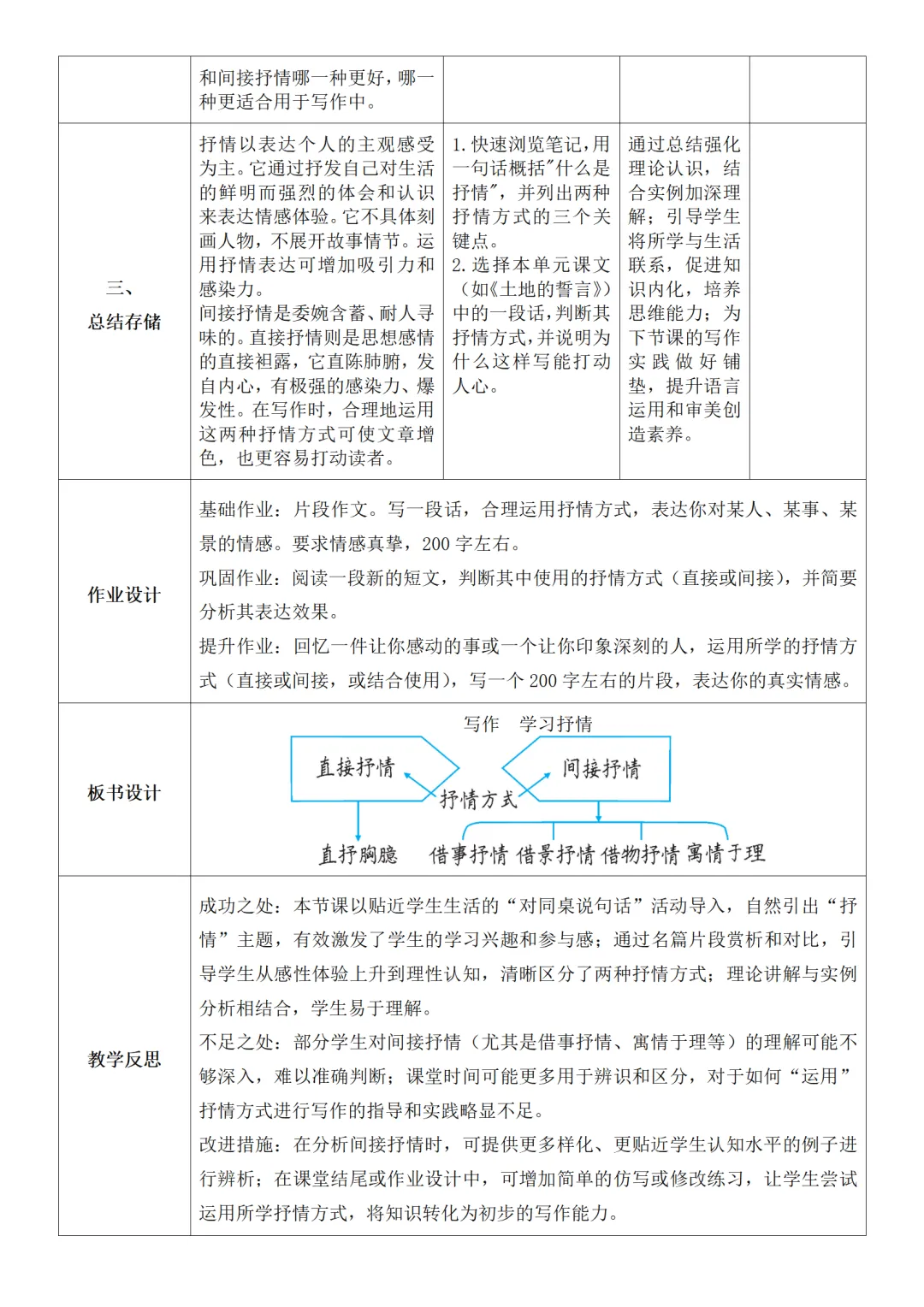 >部编人教版新教材七下语文表格式教案(教学反思有内容)