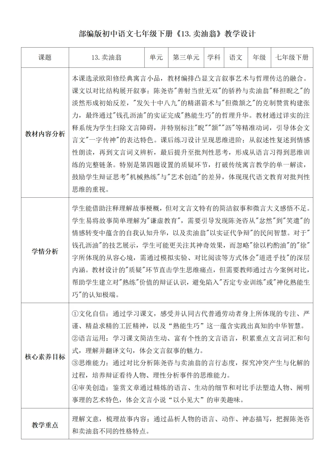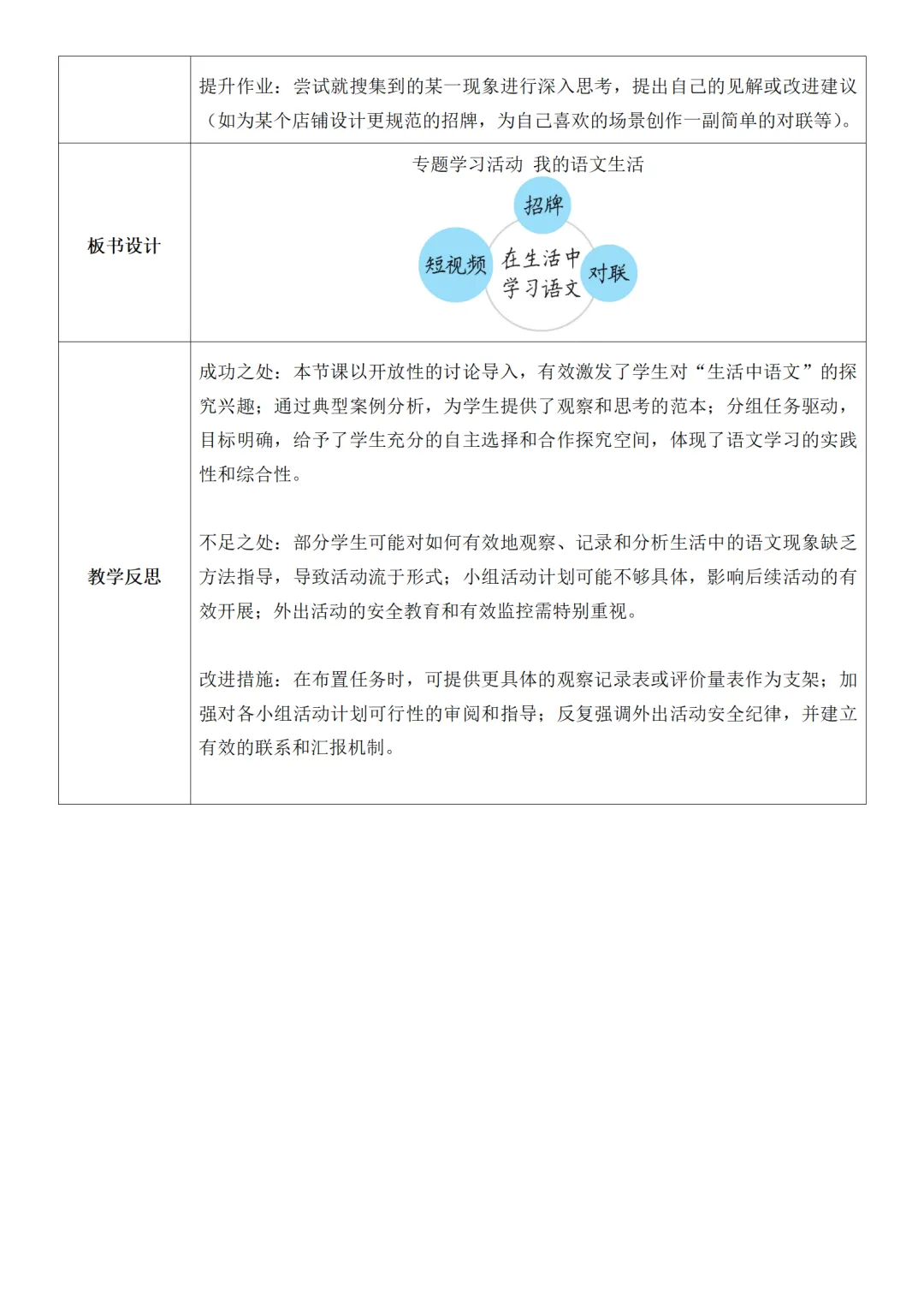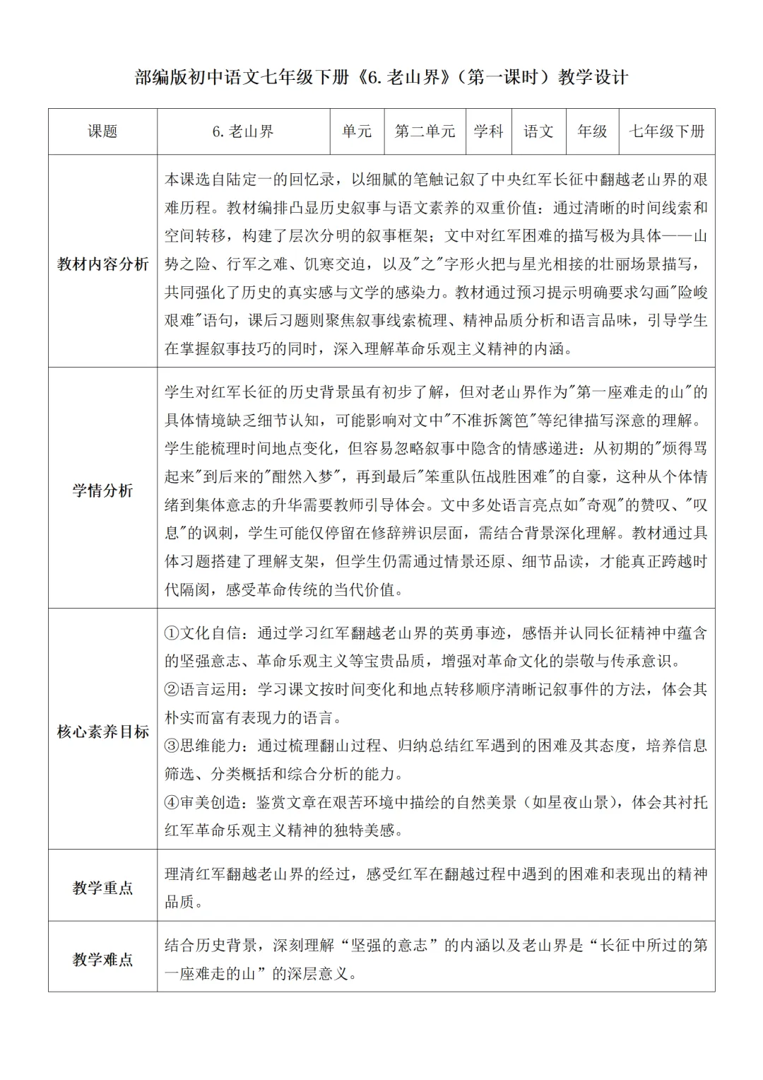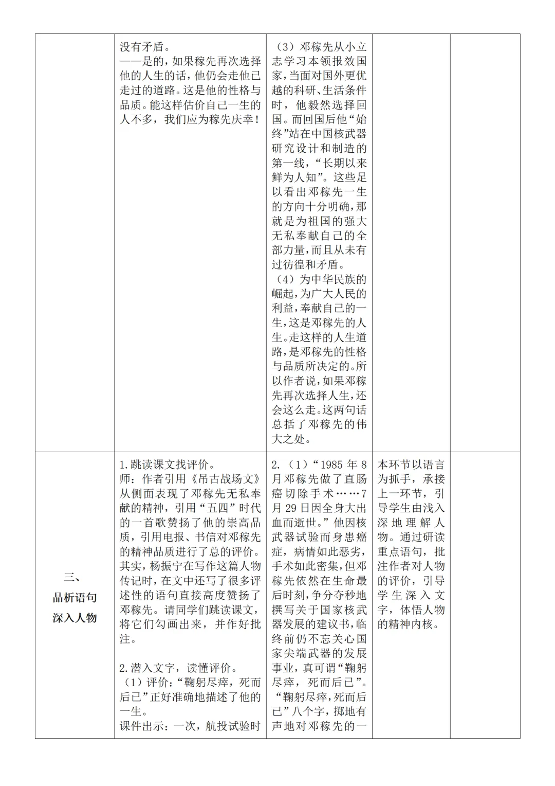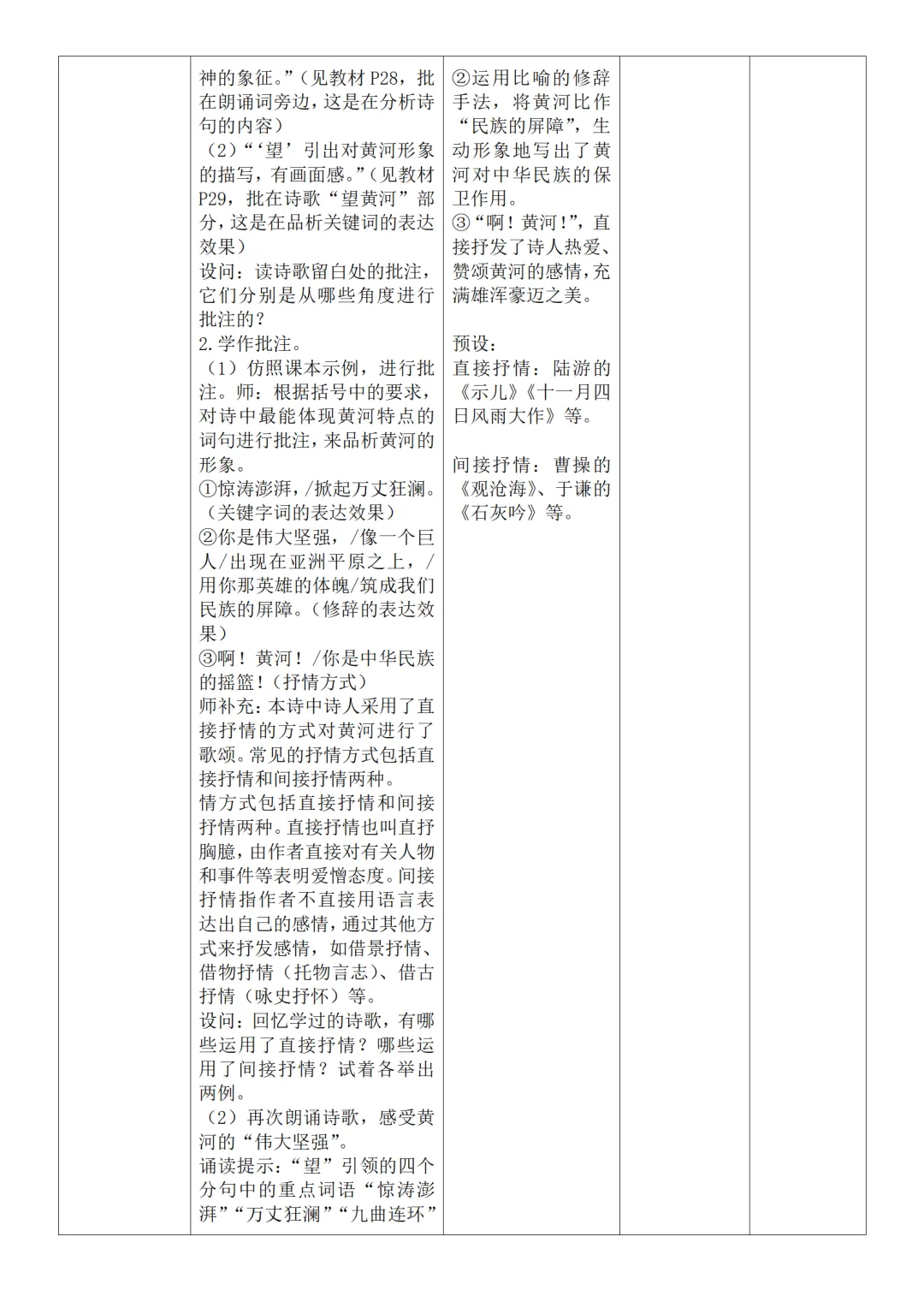 >部编人教版新教材七下语文表格式教案(教学反思有内容)