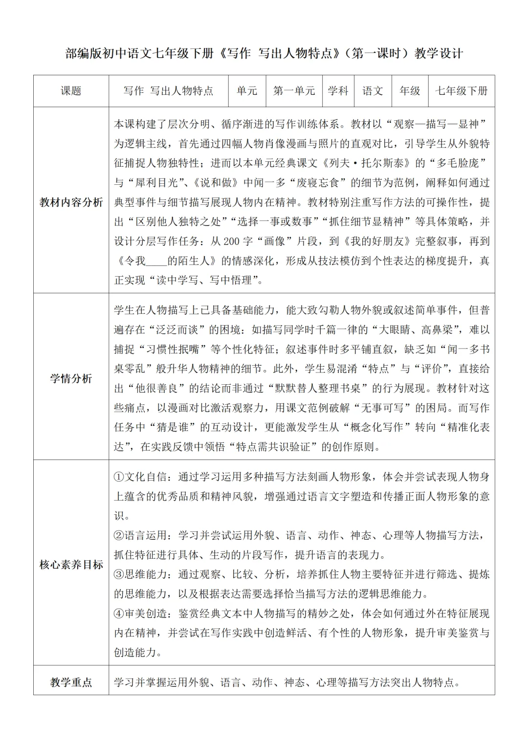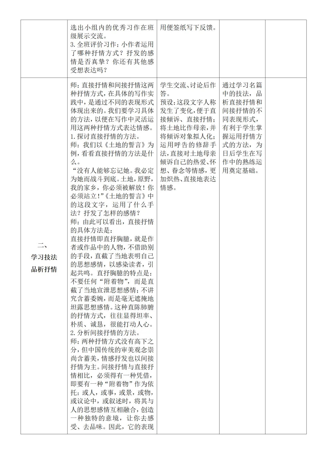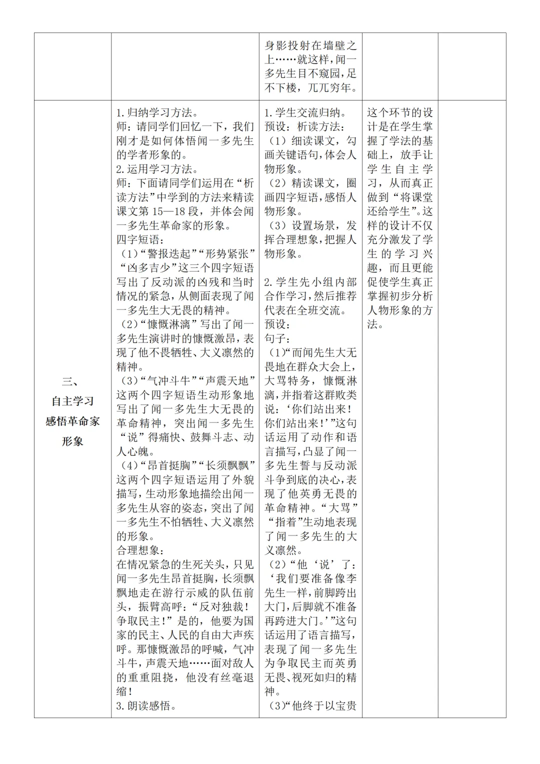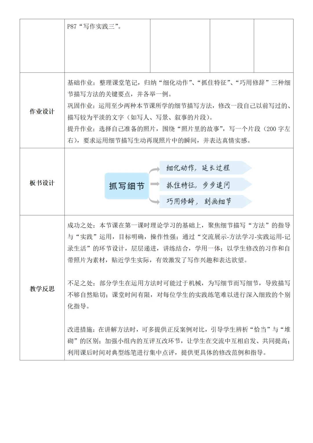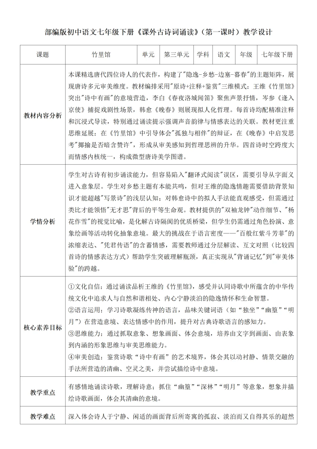 >部编人教版新教材七下语文表格式教案(教学反思有内容)
