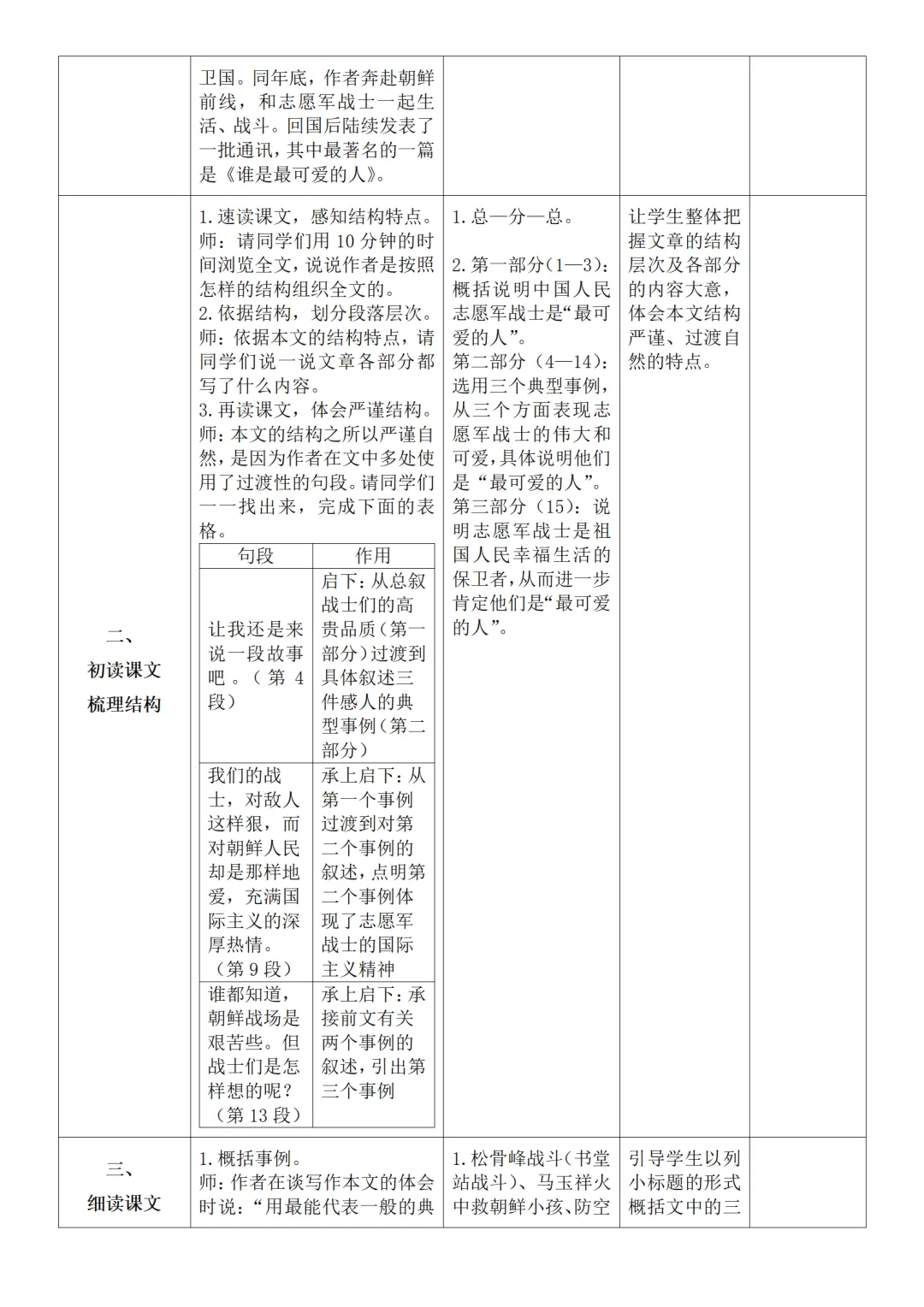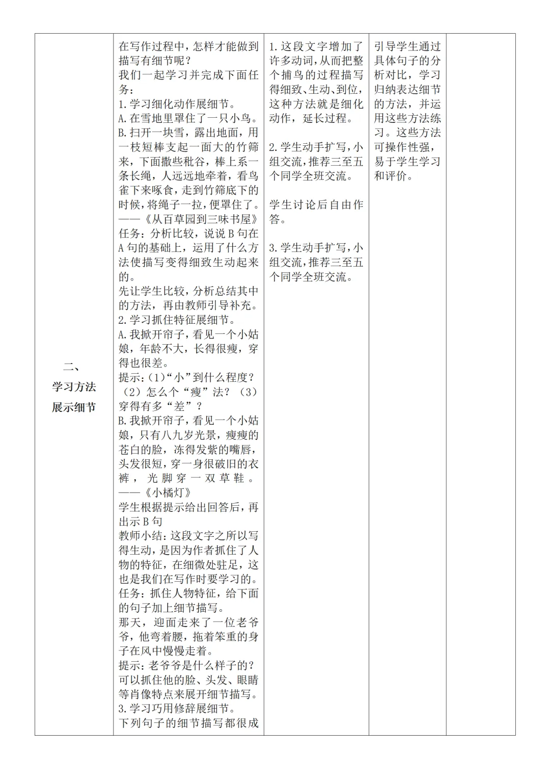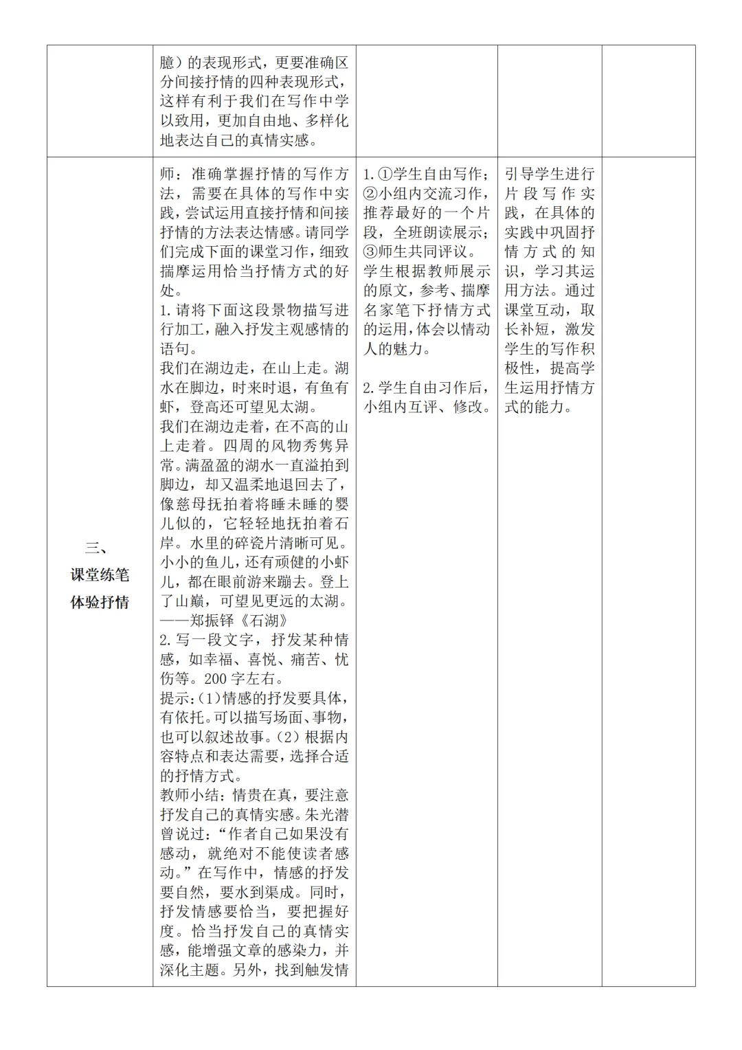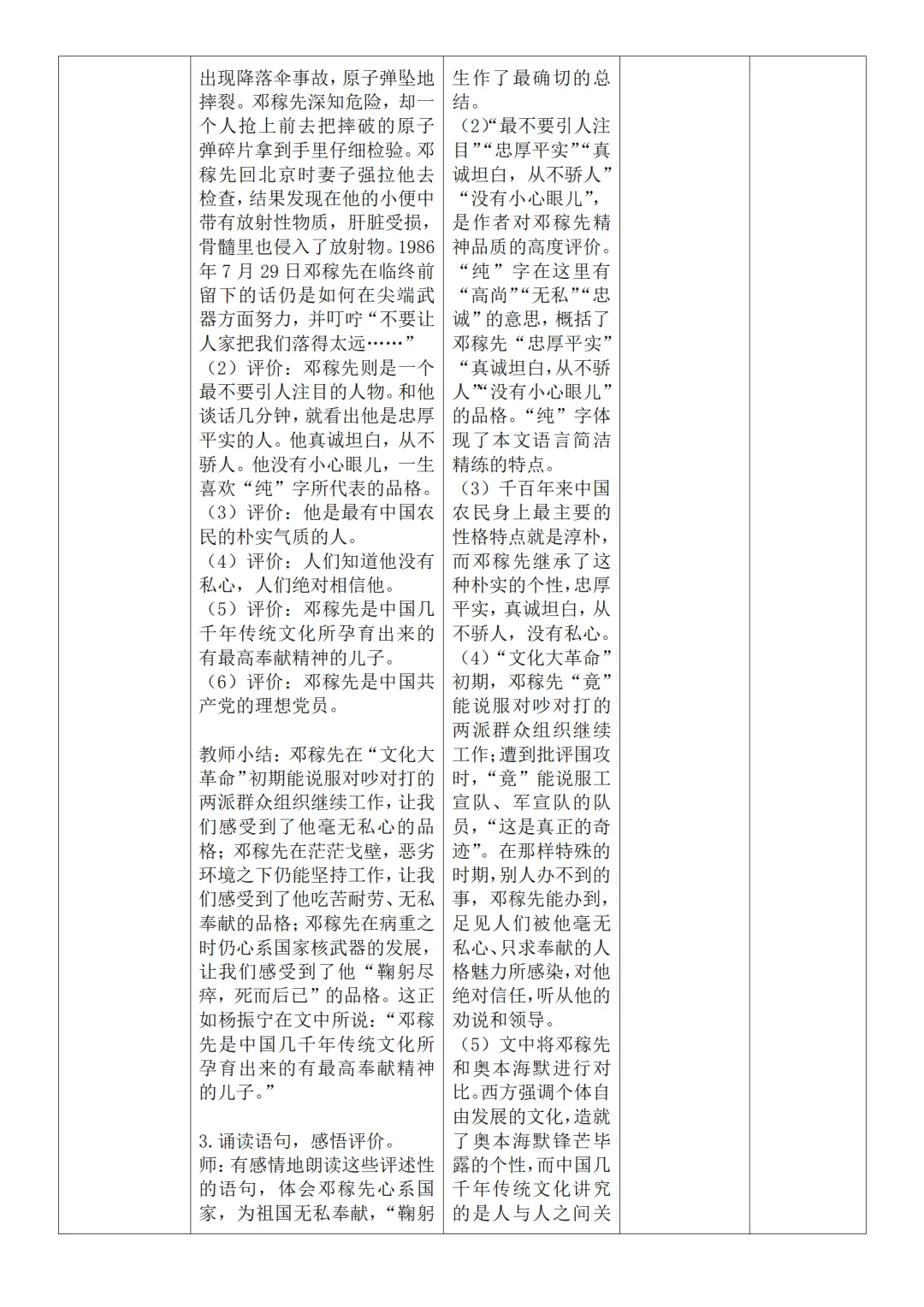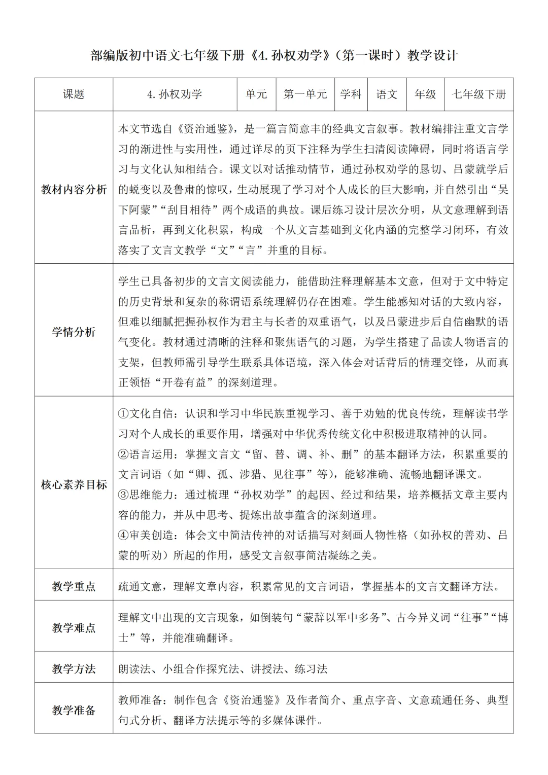 >部编人教版新教材七下语文表格式教案(教学反思有内容)