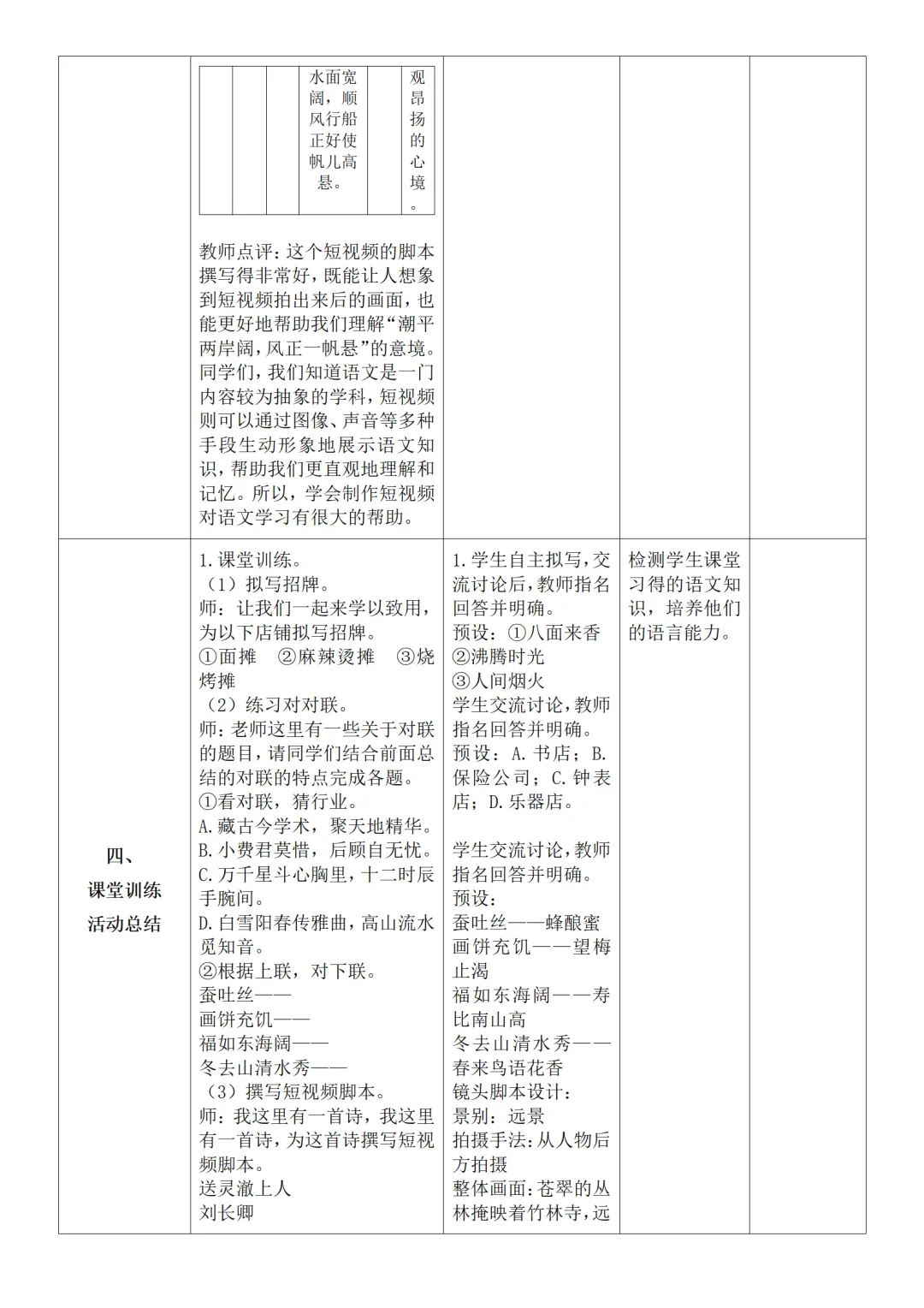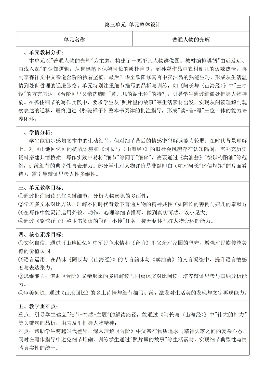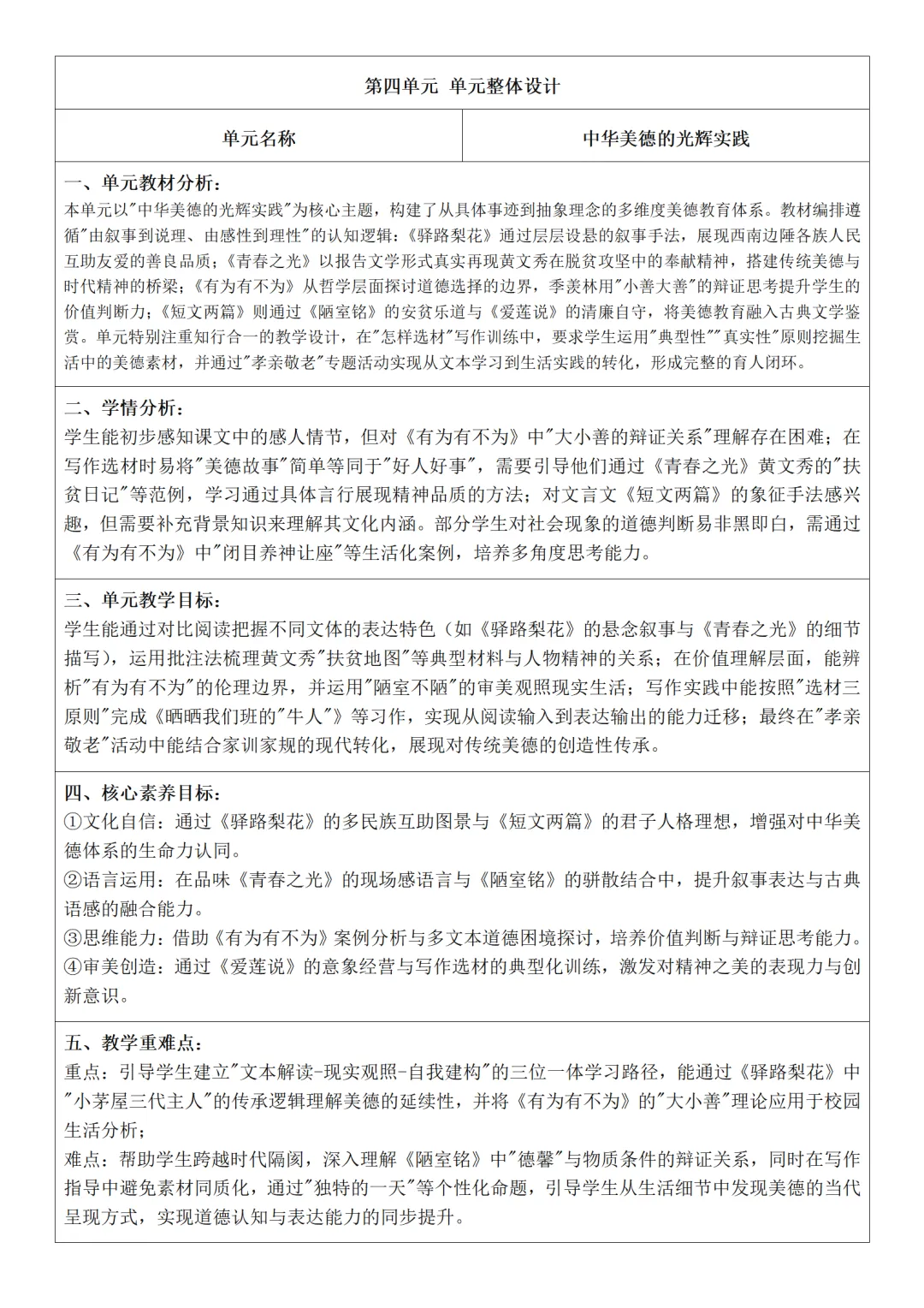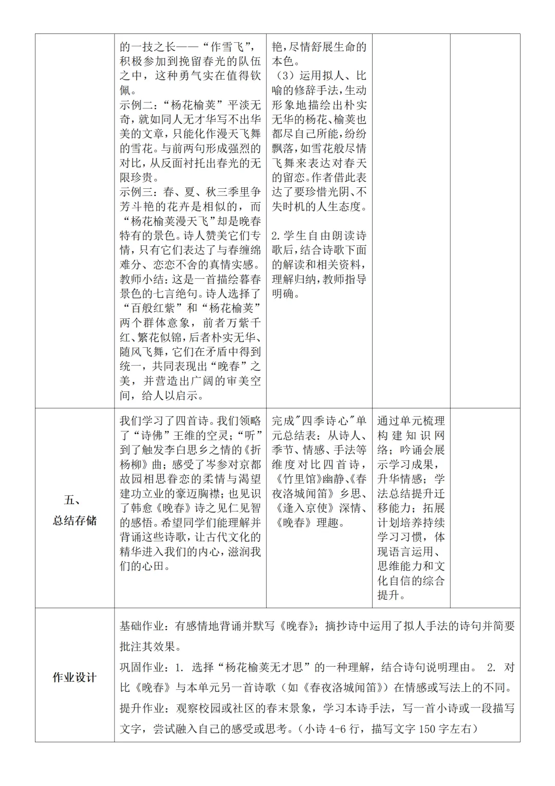 2026年春人教版四年级语文第五单元教案简案