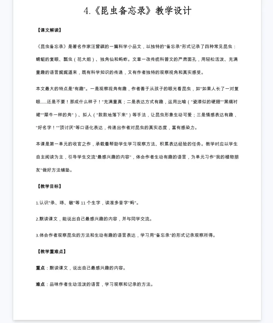 【精品课件】三年级下《1.4昆虫备忘录》课件+教案