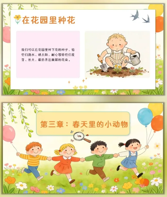 春天是万物复苏、生机勃勃的季节,对幼儿园的小朋友来说,春天充满了新奇与趣味,是感知自然、探索世界的绝佳契机。