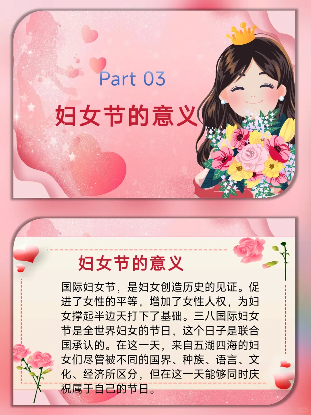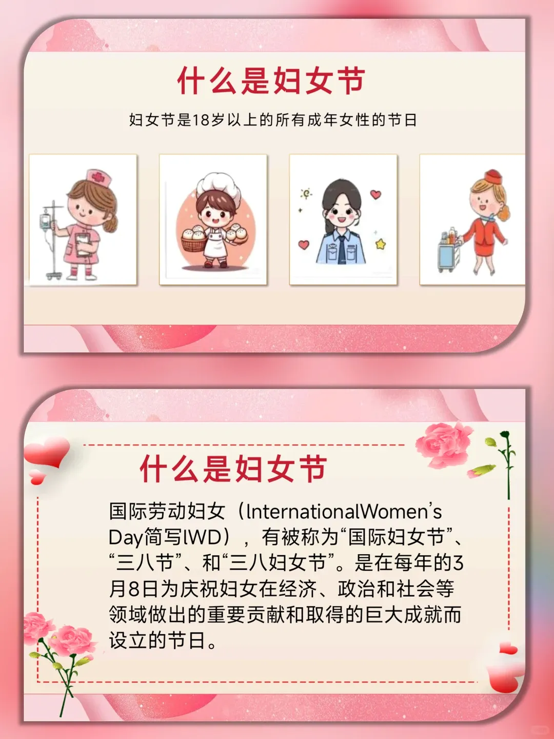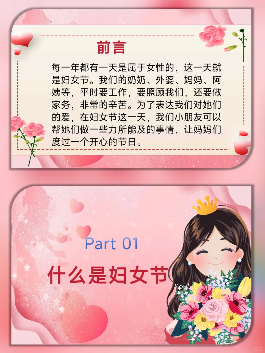 让幼儿知道每年新历3月8日是妇女节,认识到这是属于18岁以上成年女性的节日。 帮助幼儿了解妇女节的来历和意义,拓宽知识视野。 引导幼儿学会尊敬、关心妈妈等女性长辈,大胆向她们表达自己的爱。 通过制作爱心花束,锻炼幼儿的动手能力,提升手部精细动作发展。 激发幼儿乐于参与节日活动的兴趣,培养积极的情感体验和团队协作精神。