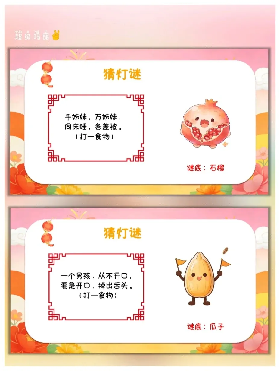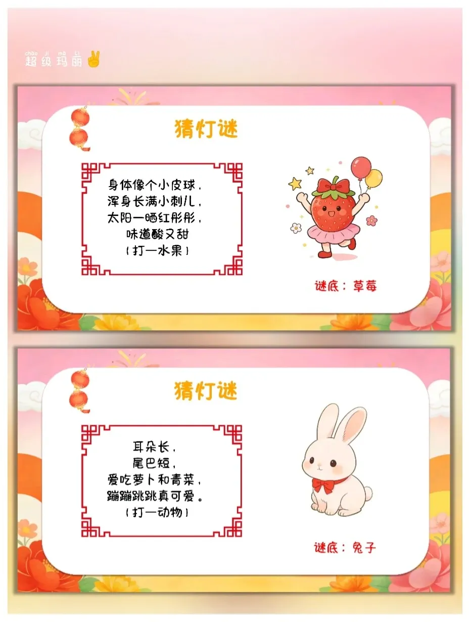 能力目标:积极参与猜灯谜游戏,能大胆表达自己的想法和答案,提升观察力和简单的逻辑思维能力;能在老师的引导下说出元宵节的欢乐场景,锻炼语言表达能力。