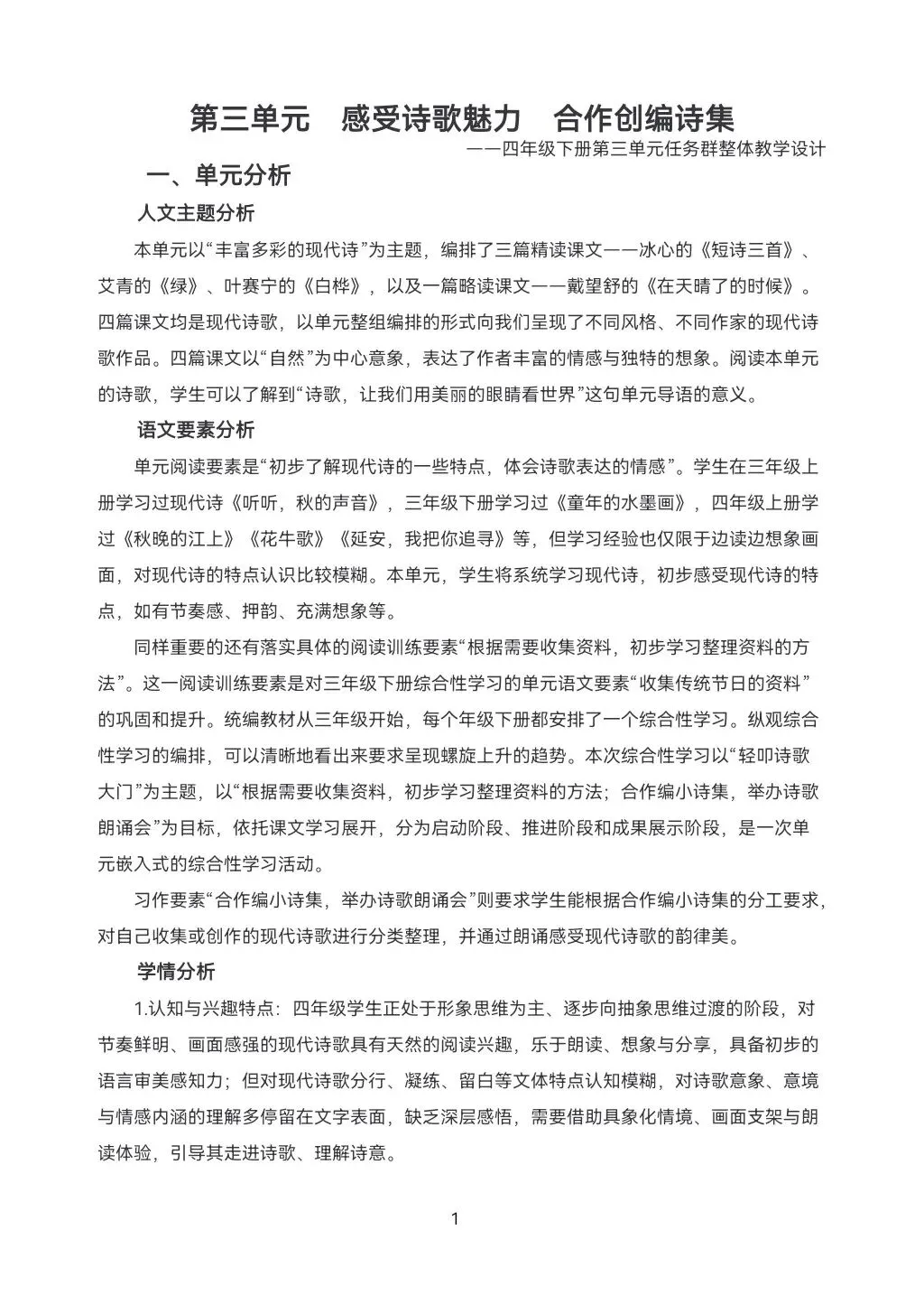 2026新四年级下册第三单元大单元解读课件+发言稿+大单元教学设计