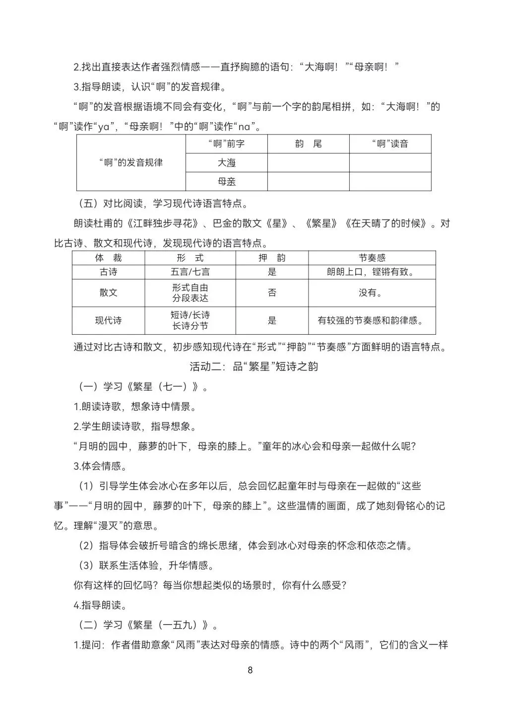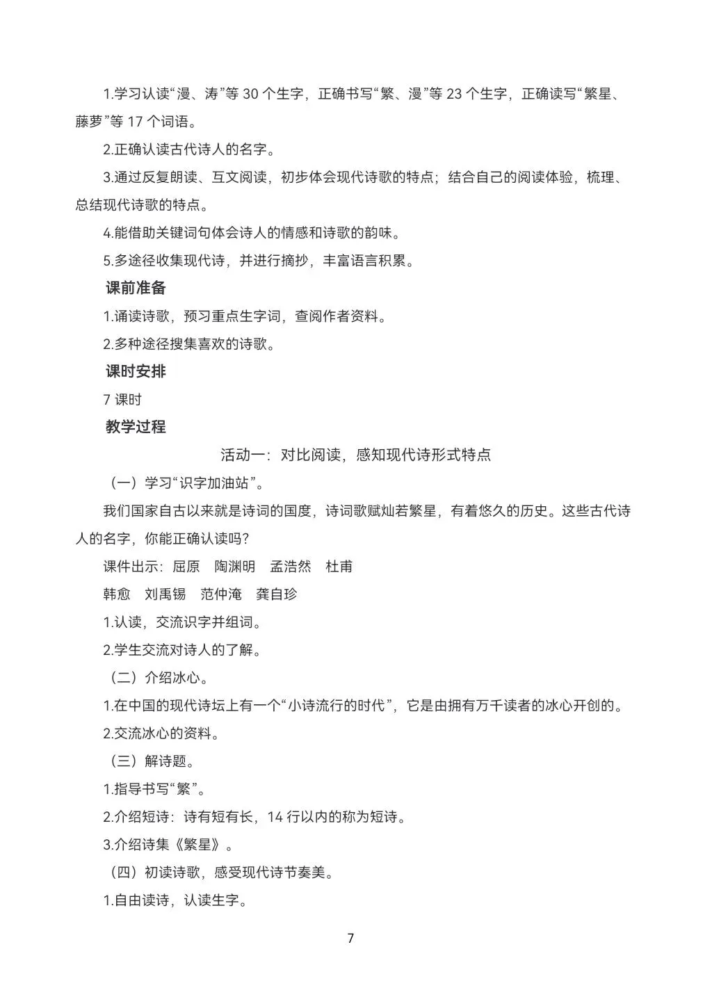 部编人教版新教材七下语文表格式教案(教学反思有内容)
