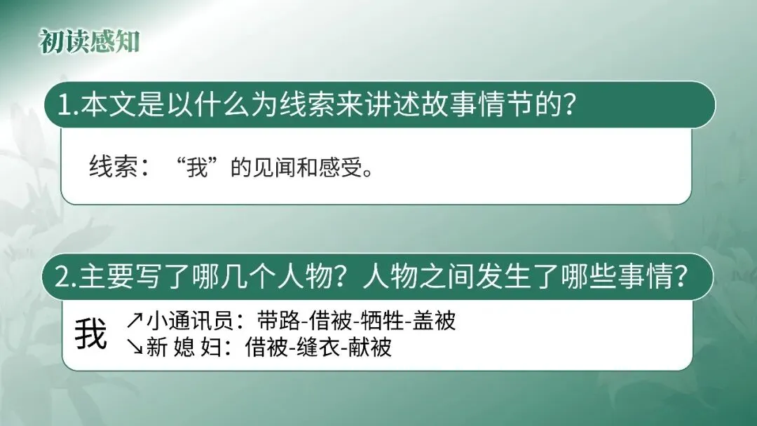 本期更新的课件为统编高教社版中职语文基础模块下册第一单元《百合花》,共19页。