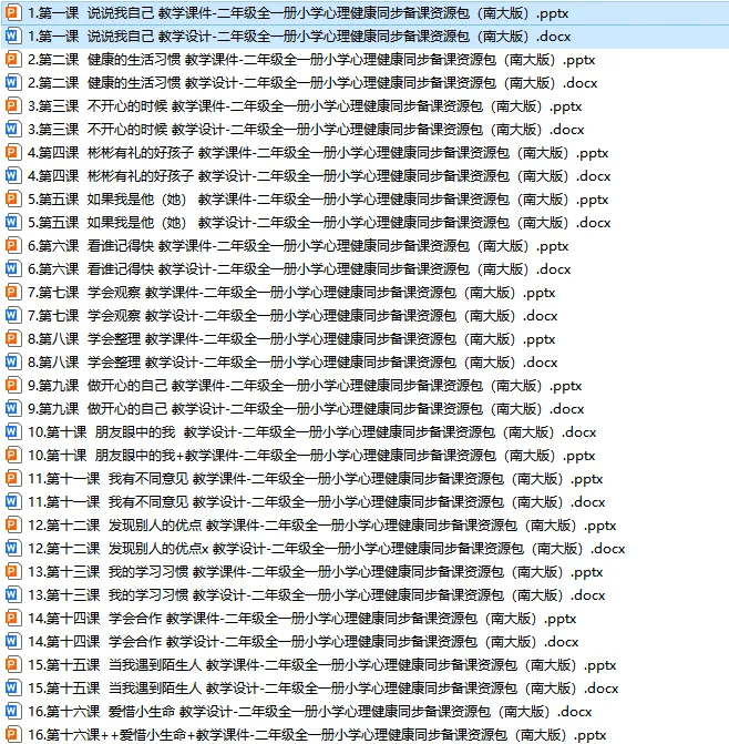 当前位置:首页>教案>小学心理健康二年级全一册(南大版)教案+PPT课件,可下载编辑!