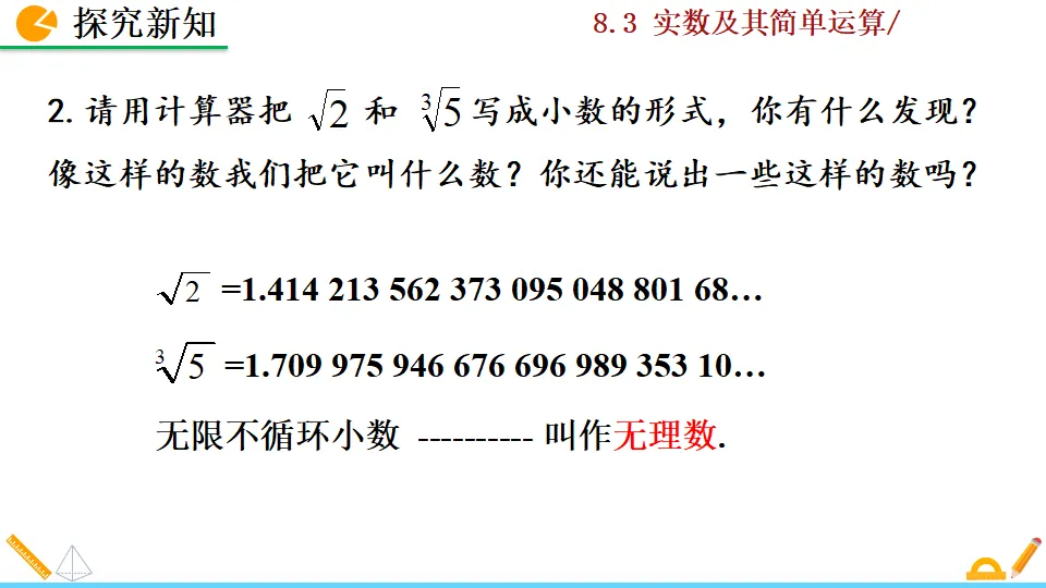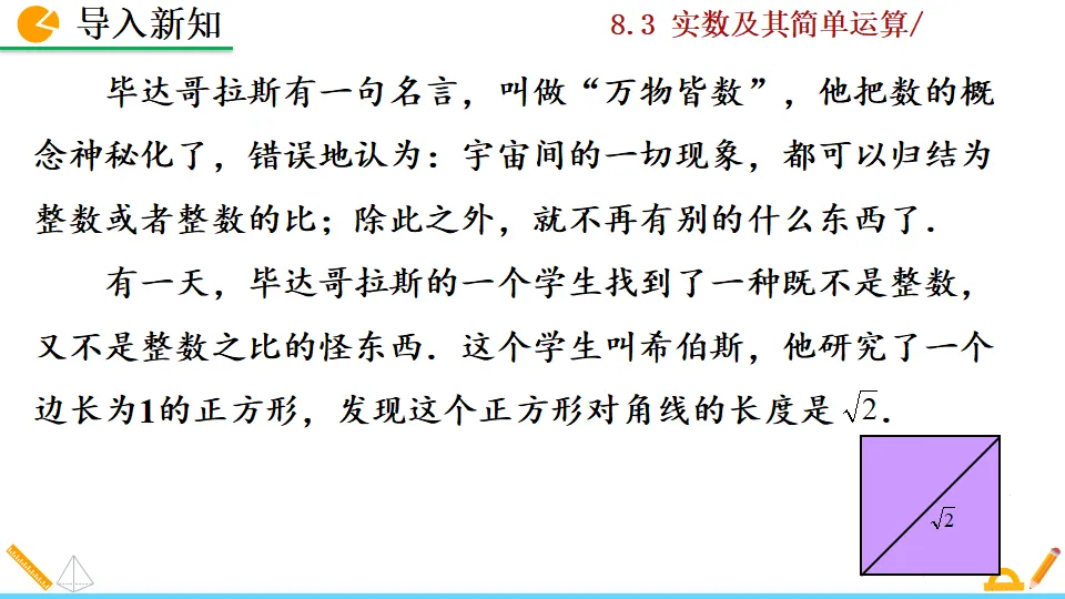 当前位置:首页>课件>实数及其简单运算第一课时PPT教学课件人教版数学七年级下册