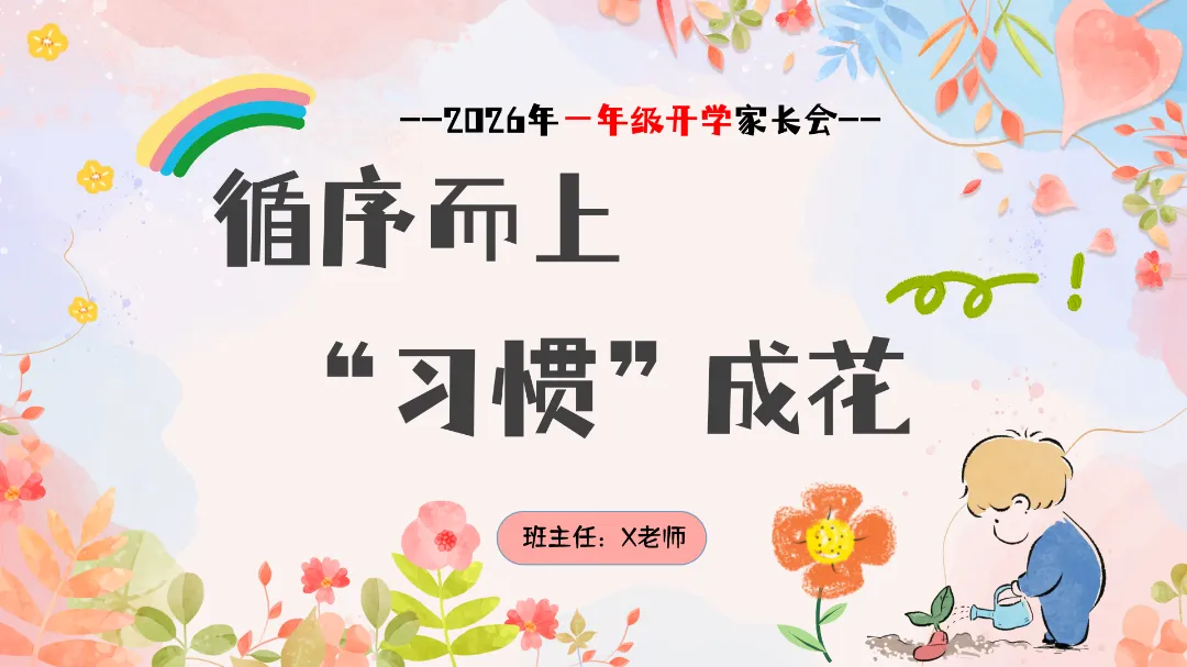 今日分享2026年春《一年级下册开学家长会课件PPT“循序二上,习惯成花”》电子版可编辑有发言稿!家人们,为了能让孩子们尽快适应校园的新生活,今天我们同各位家长共同探讨如何根据低年级学生的特点,提高家庭教育的效果!~