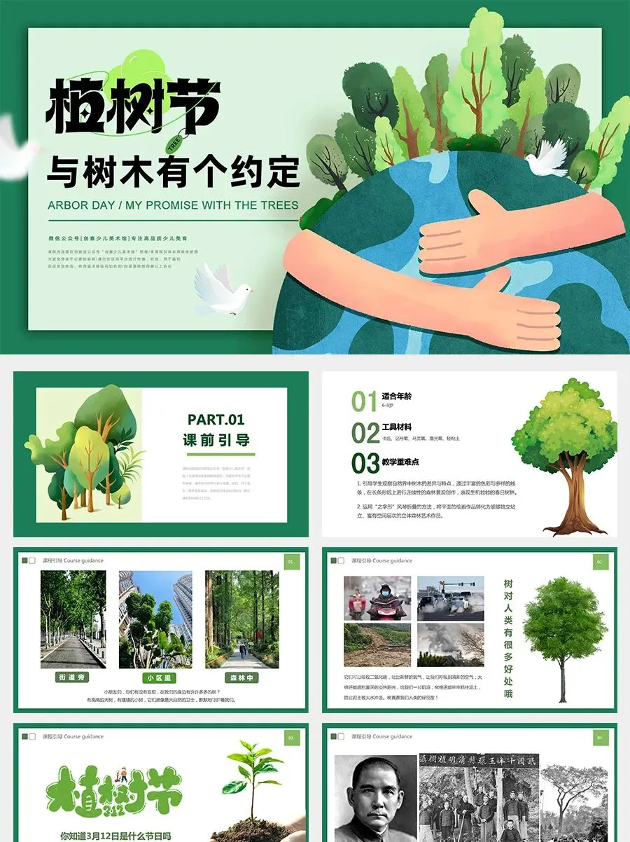 小朋友们,你们知道吗?每年的 3月12日 是我们国家的 植树节。这个节日的设立,是为了纪念一位非常热爱自然、关心国家发展的伟大人物——孙中山先生。为什么要种树呢?因为大树就像地球的“肺”,它们可以帮助我们净化空气,还能为许多小动物提供温暖安全的家。所以今天,我们也要用艺术的方式,在画纸上“种”出一片属于自己的森林!
