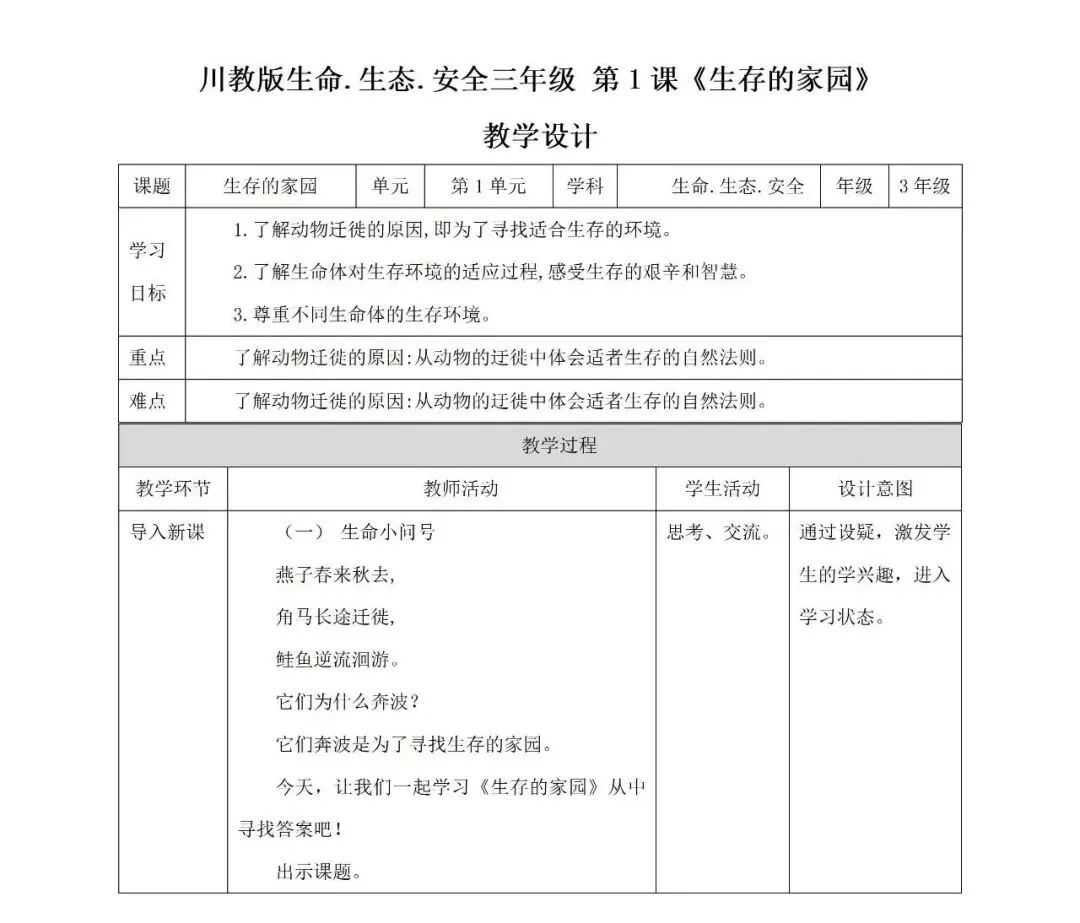 >川教版生命生态安全三年级下册课件教案,电子版可下载编辑