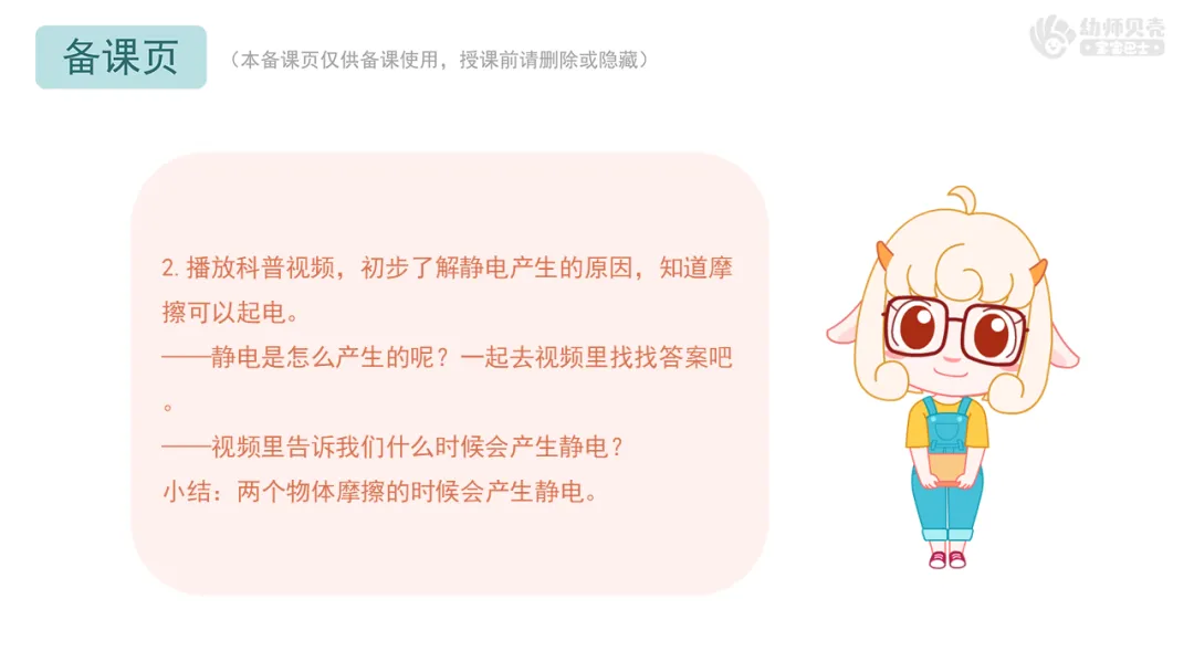 2.播放科普视频,初步了解静电产生的原因,知道摩擦可以起电。