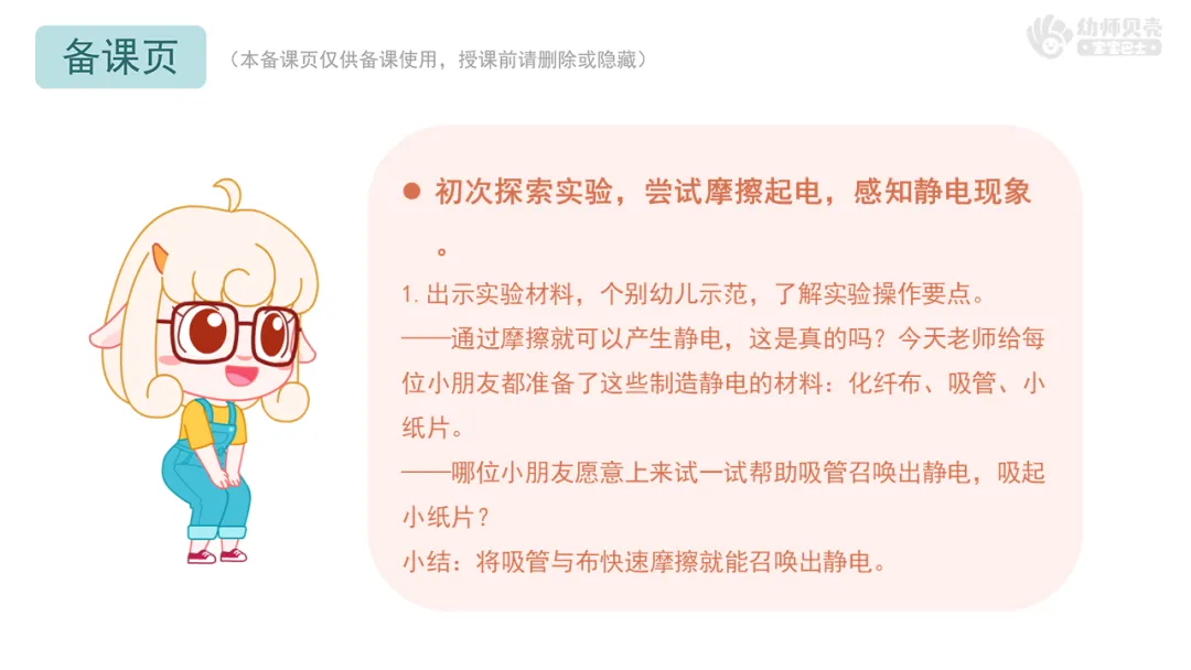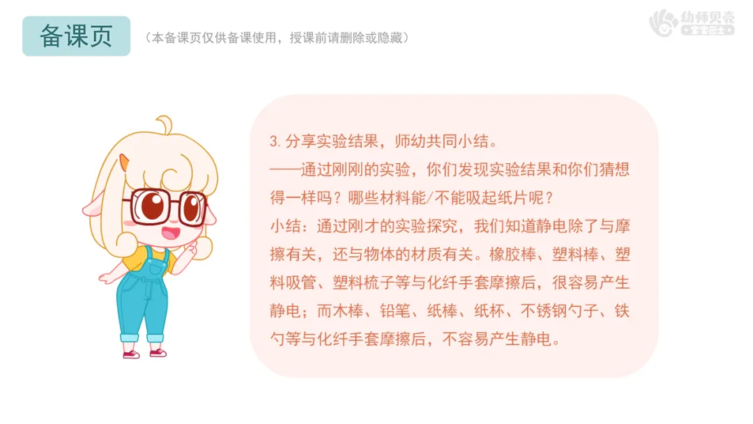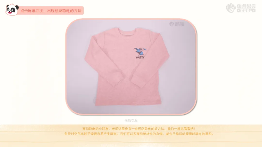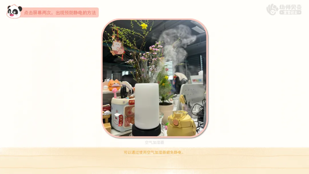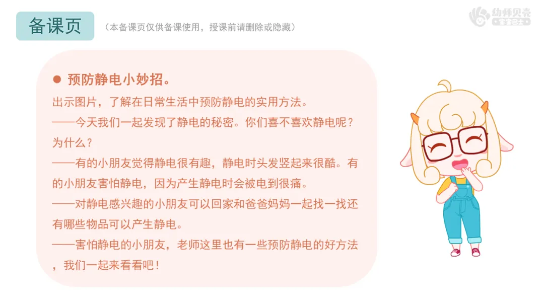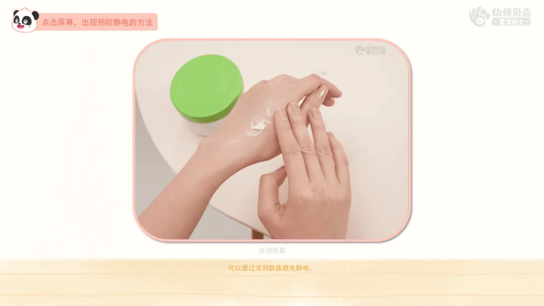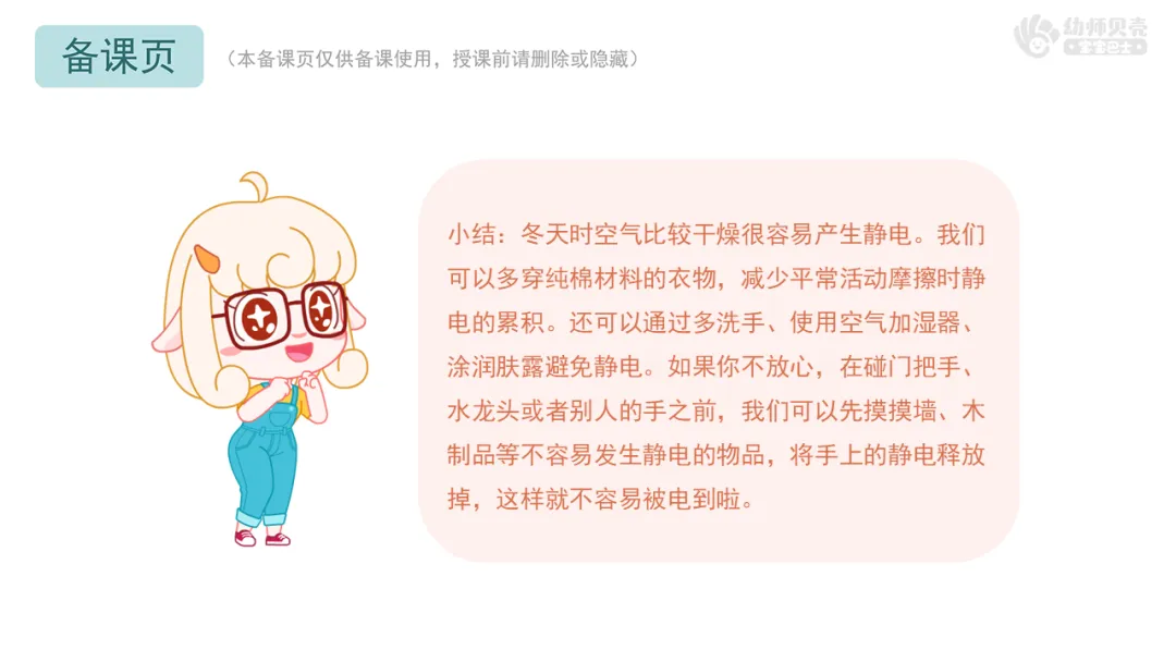 ——害怕静电的小朋友,老师这里也有一些预防静电的好方法,我们一起来看看吧!