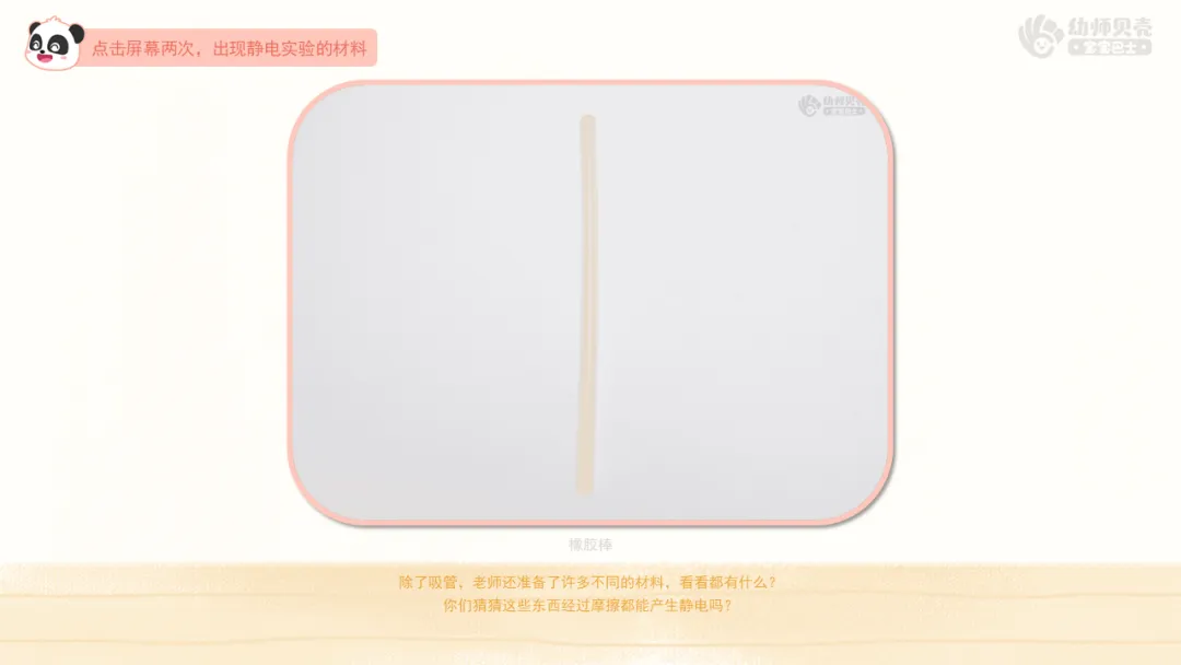 ——对静电感兴趣的小朋友可以回家和爸爸妈妈一起找一找还有哪些物品可以产生静电。