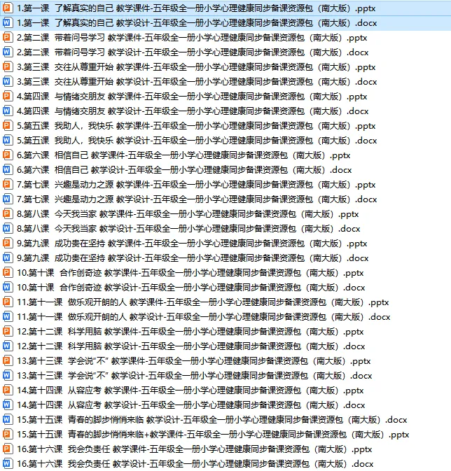 当前位置:首页>教案>小学心理健康五年级全一册(南大版)教案+PPT课件,可下载编辑!
