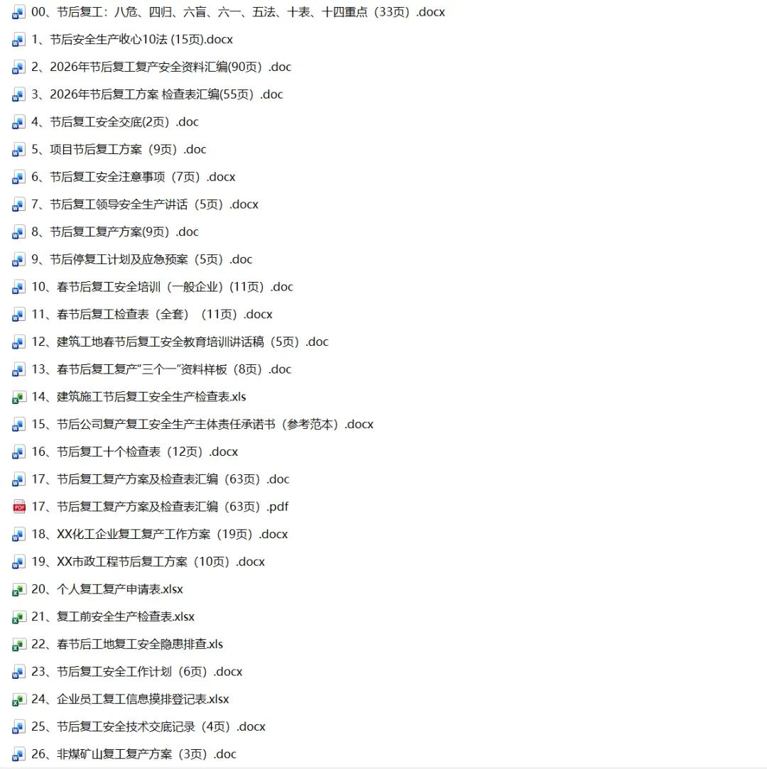 上好开工安全第一课 把好安全第一关,为防止出现节后员工安全意识懈怠的情况,加强安全管控,部署节后工作重点,加强全员安全意识的树立,为新一年安全工作开好头、起好步!小安整理60篇2026年春节节后复工复产安全精品PPT及文档!陆续上传,供大家参考借鉴!减少您大费周折找资料的时间!