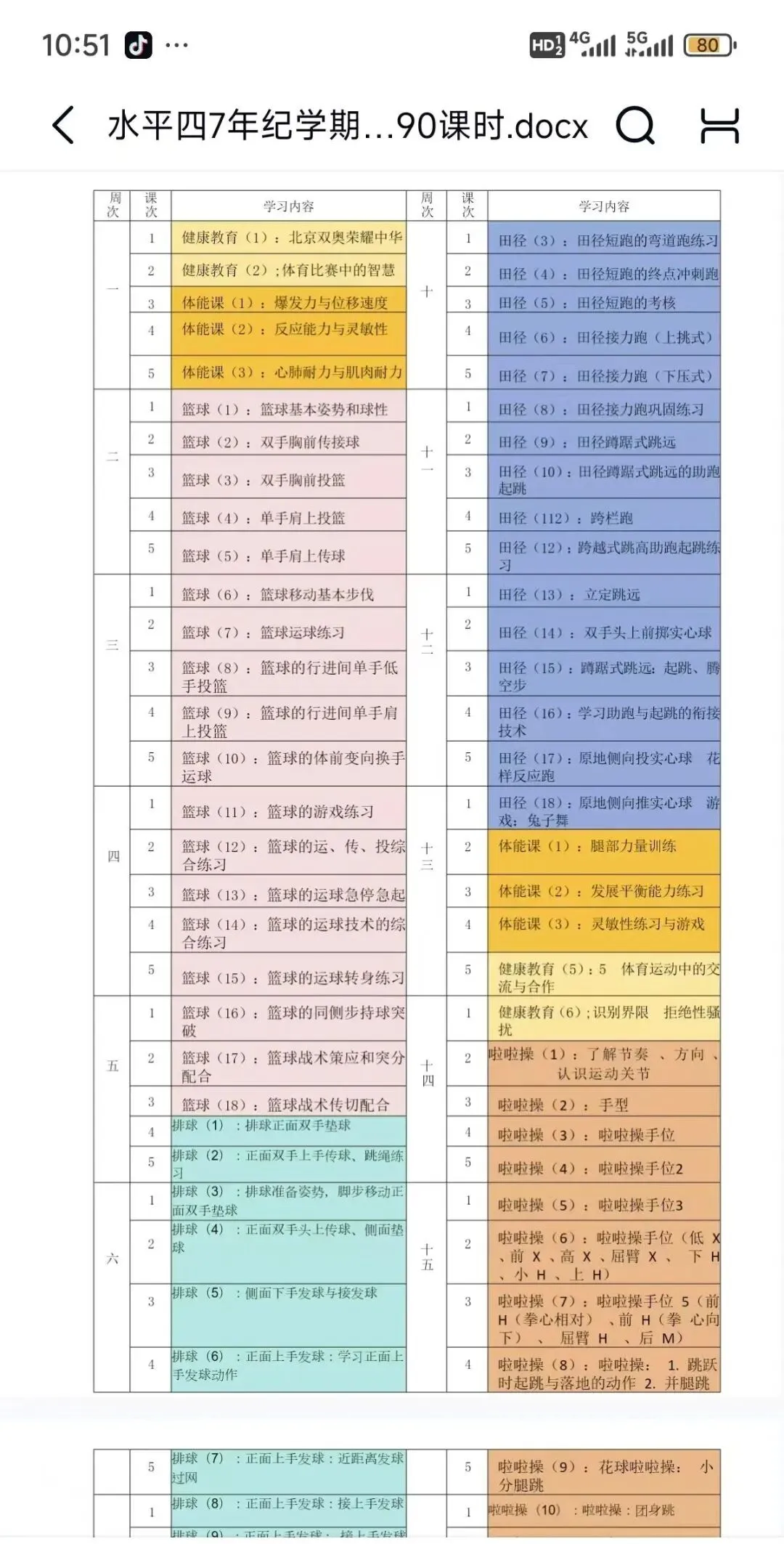 十四 | 40 | 任选教材——篮球:篮球游戏和比赛。 |