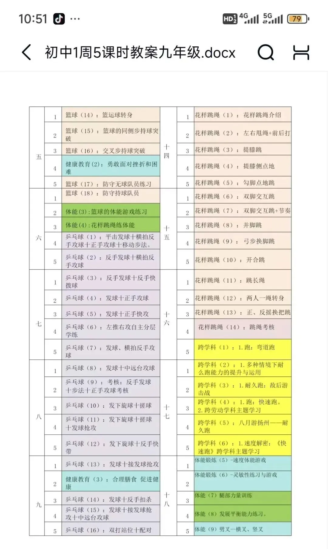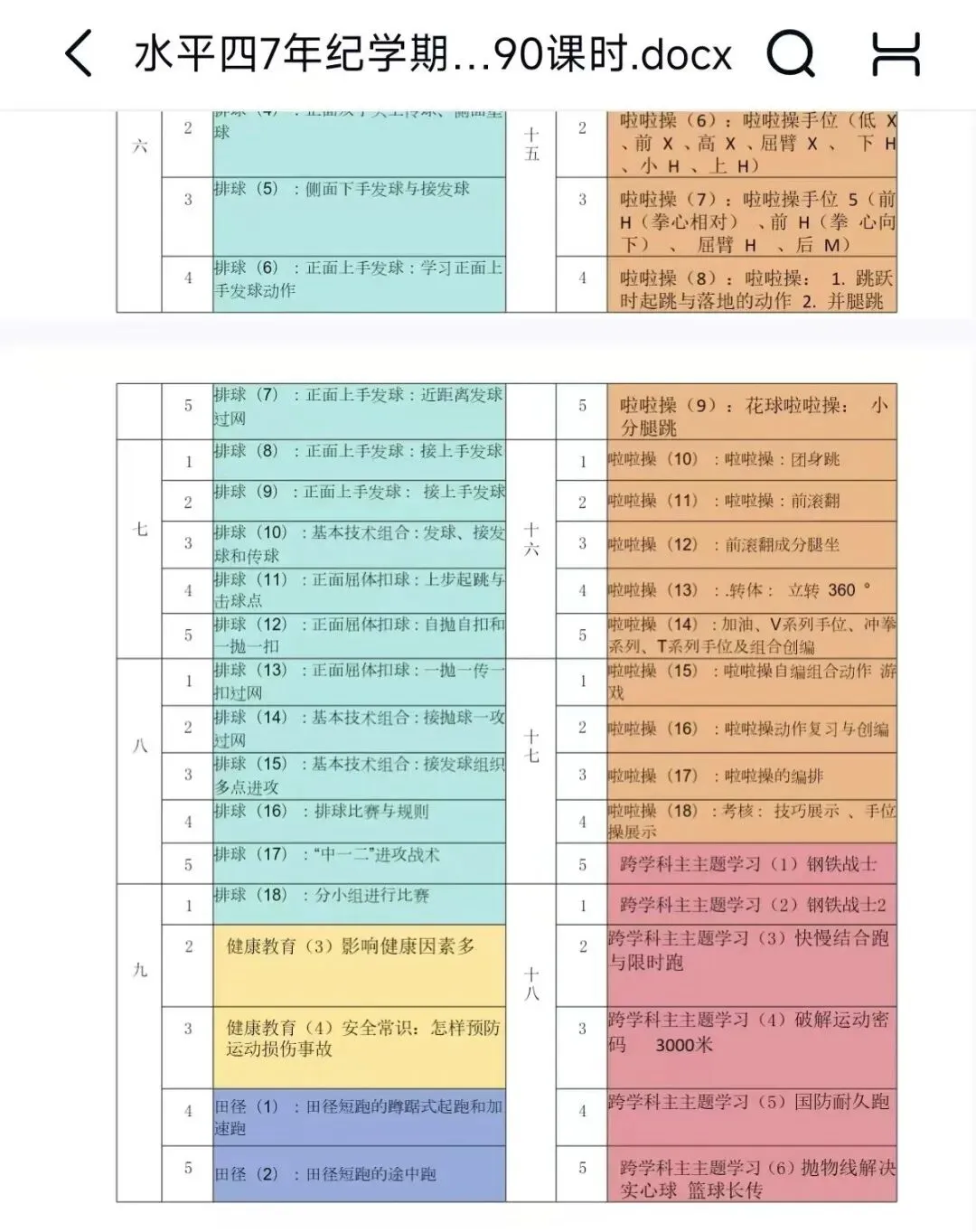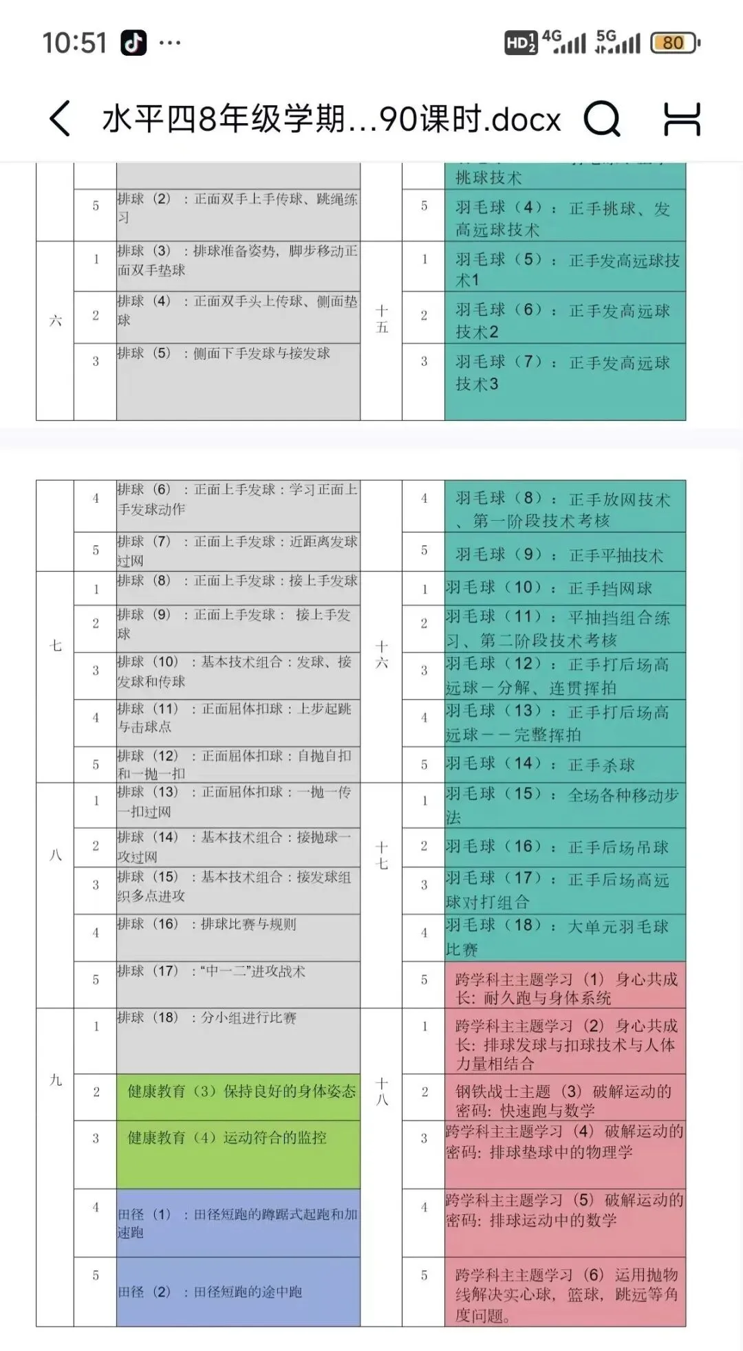 十 | 28 | 身体素质练习 2、选用教材(排球) |