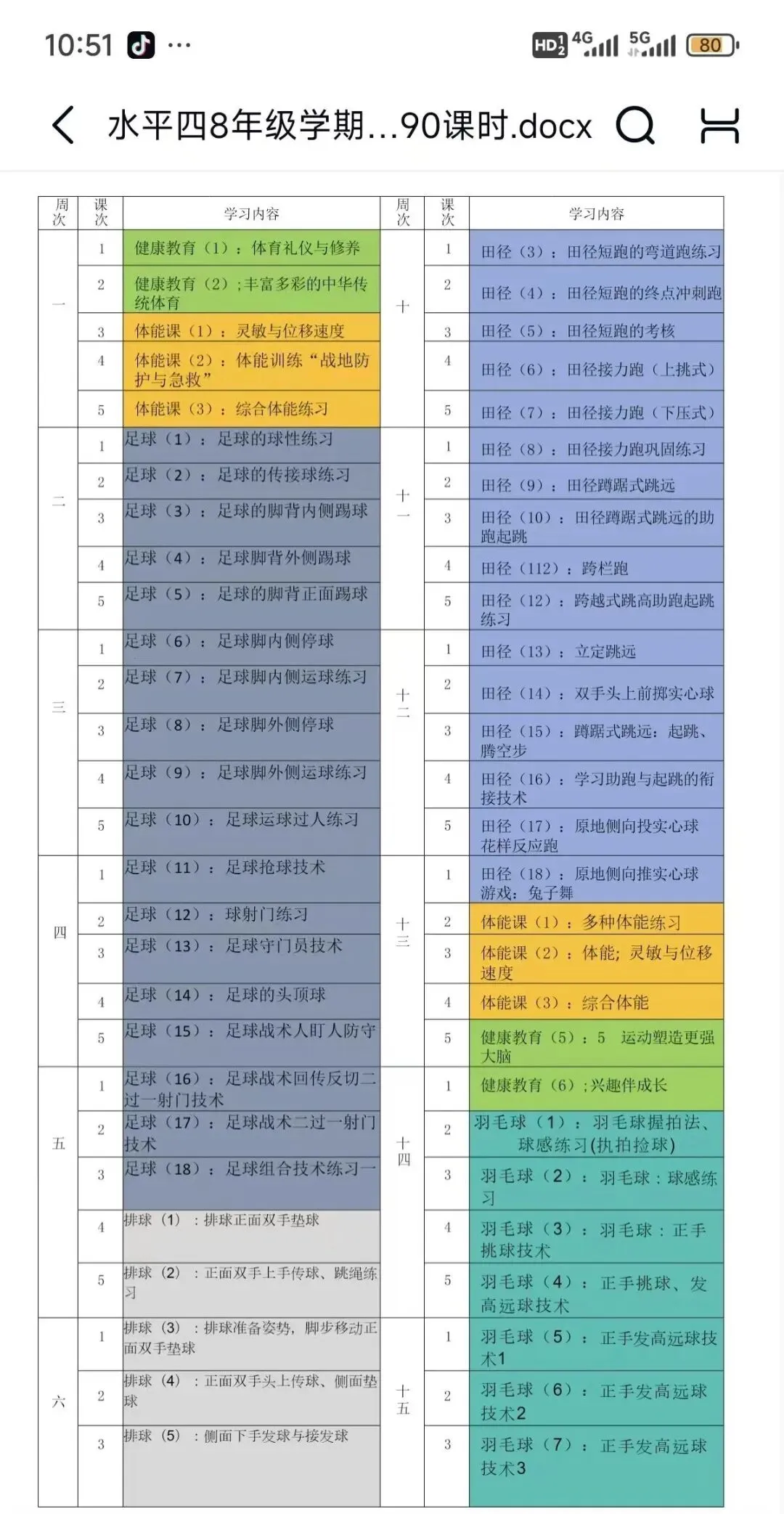 十五 | 43 | 身体素质考核: 男生:五十米跑 女生:仰卧起坐 自选项目: 篮球 足球 排球 羽毛球 |