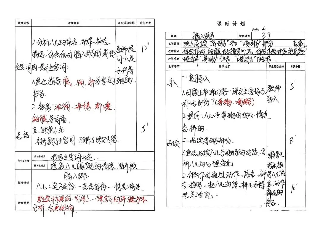 一份教案,便是一段精心设计的教学旅程;一页字迹,便是一份沉甸甸的教育担当。从教学目标到重难点突破,从环节设计到板书构思,从课堂引领到课后反思,字里行间,皆是老师们对教材的深耕细研,对学生的用心以待,对课堂的无限热爱。