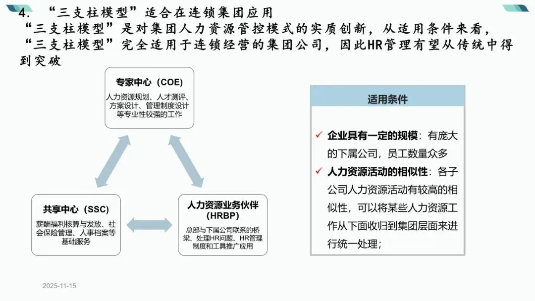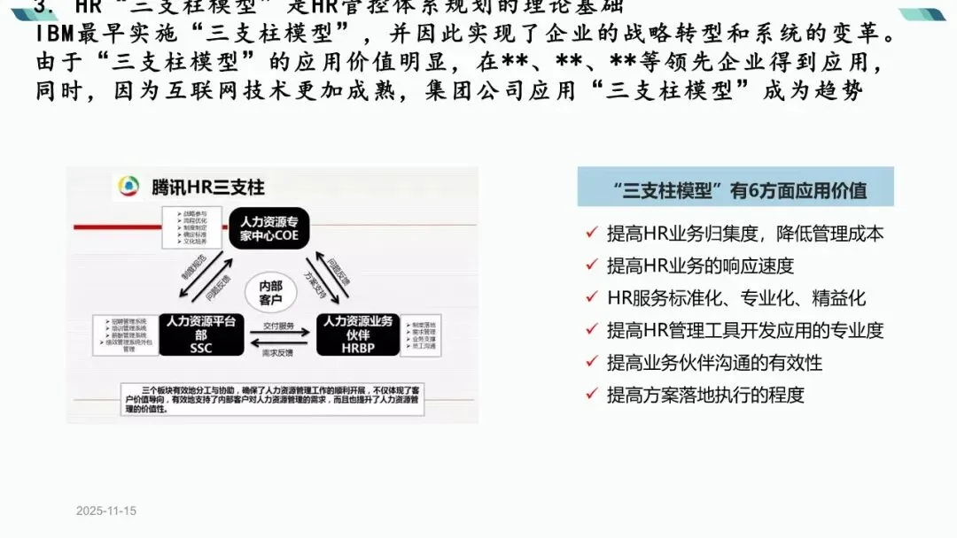 长期目标(1-3年):形成成熟、高效的三支柱协同体系,COE实现战略落地与专业赋能,HRBP实现业务深度协同,SSC实现效率最大化与服务最优化,推动人力资源成为企业核心竞争力之一。