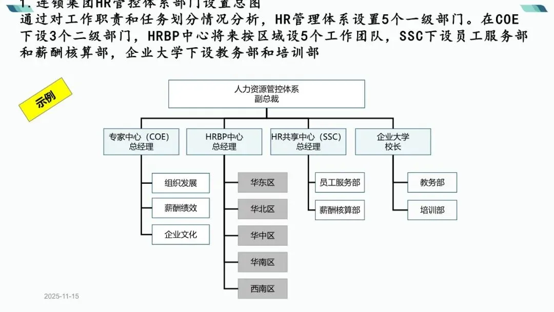 结合企业规模与业务需求,搭建“人力资源总监统筹+三支柱并行”的组织架构,明确各层级权责,确保体系高效运转: