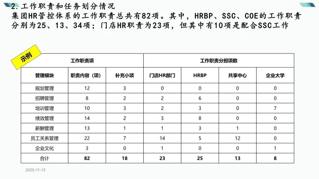 员工培训协同:COE制定培训计划与课程,HRBP组织业务部门员工参与培训,SSC负责培训事务性工作(如报名、签到、资料整理),三者协同推进培训工作落地;