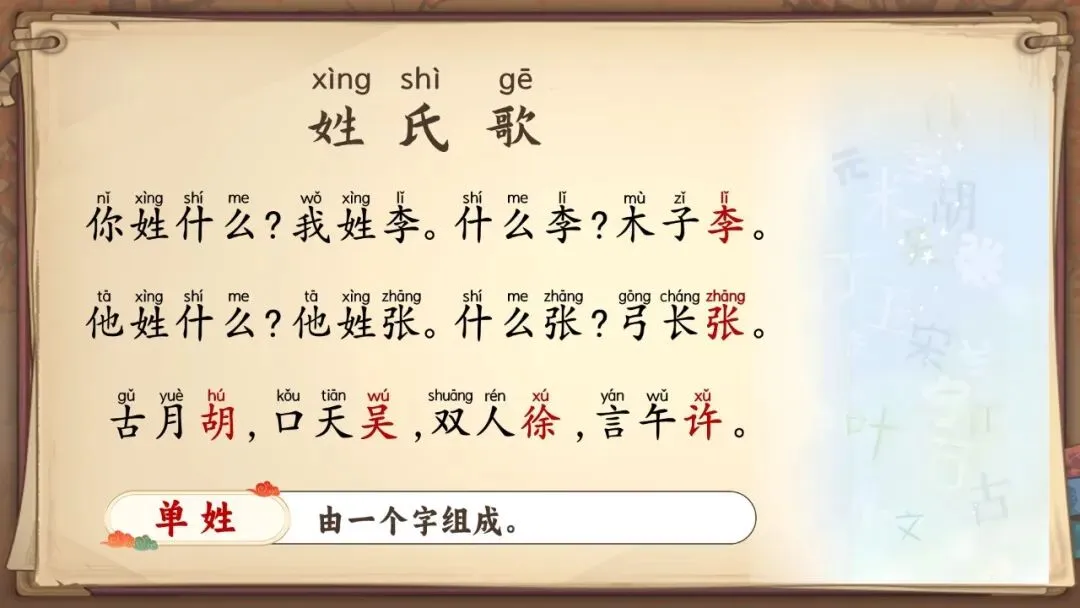 >一下第一单元《姓氏歌》 | 教学课件+教学设计