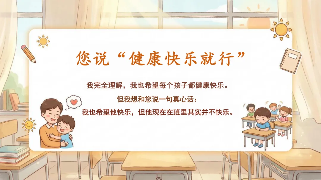 >“我的孩子健康快乐就行”家长会课件+逐字稿