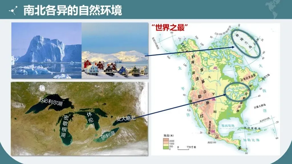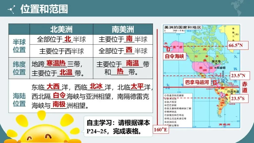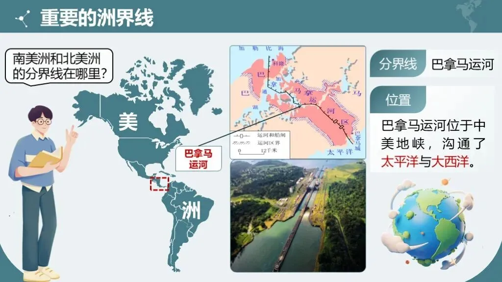 1. 掌握美洲的地理位置特点及重要洲界线