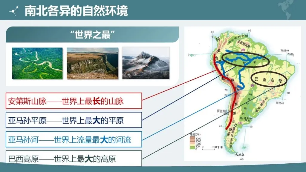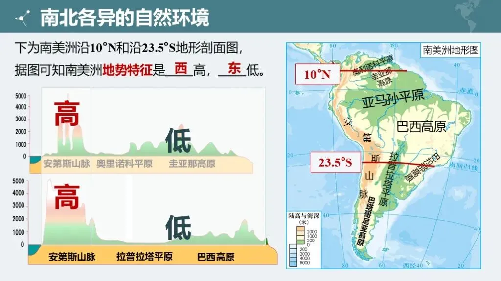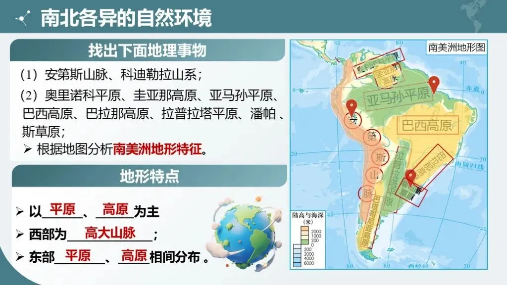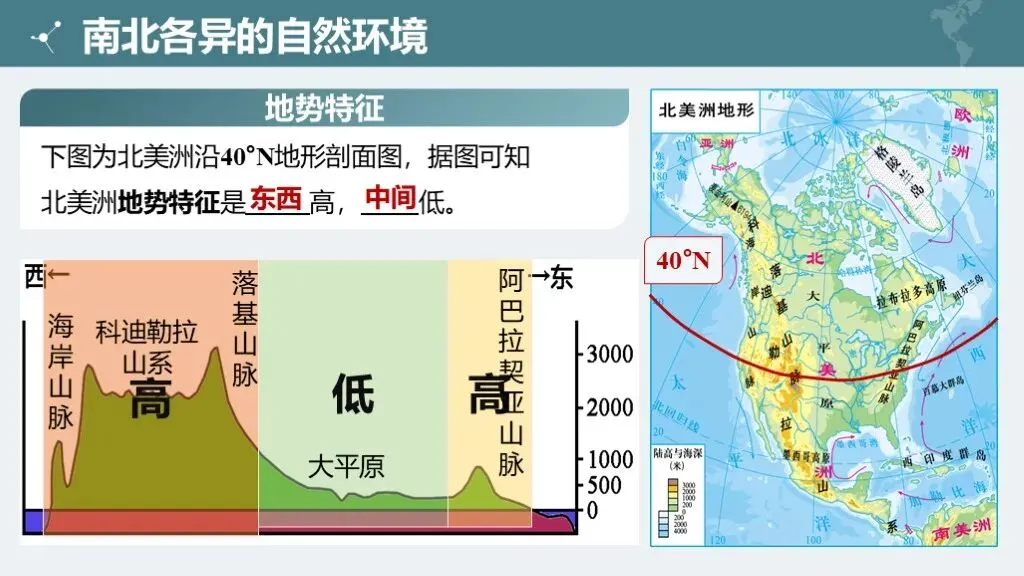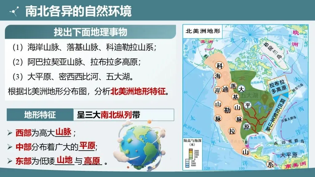 2. 理解南北美洲地形的差异特征及主要地形区的分布