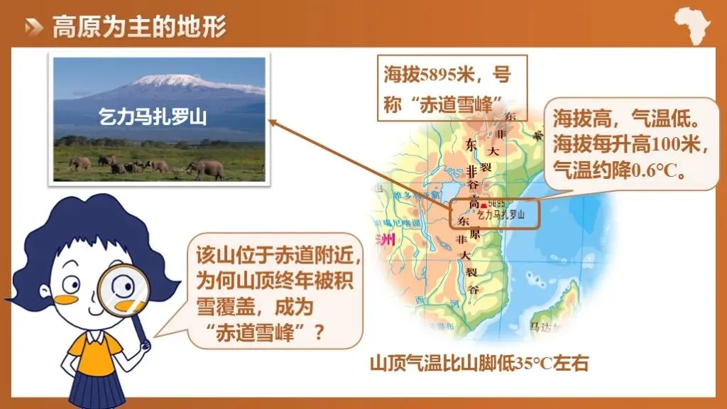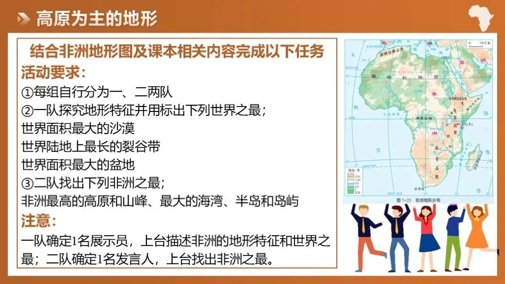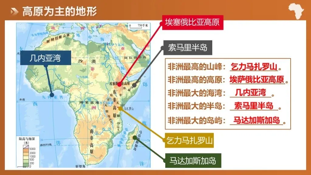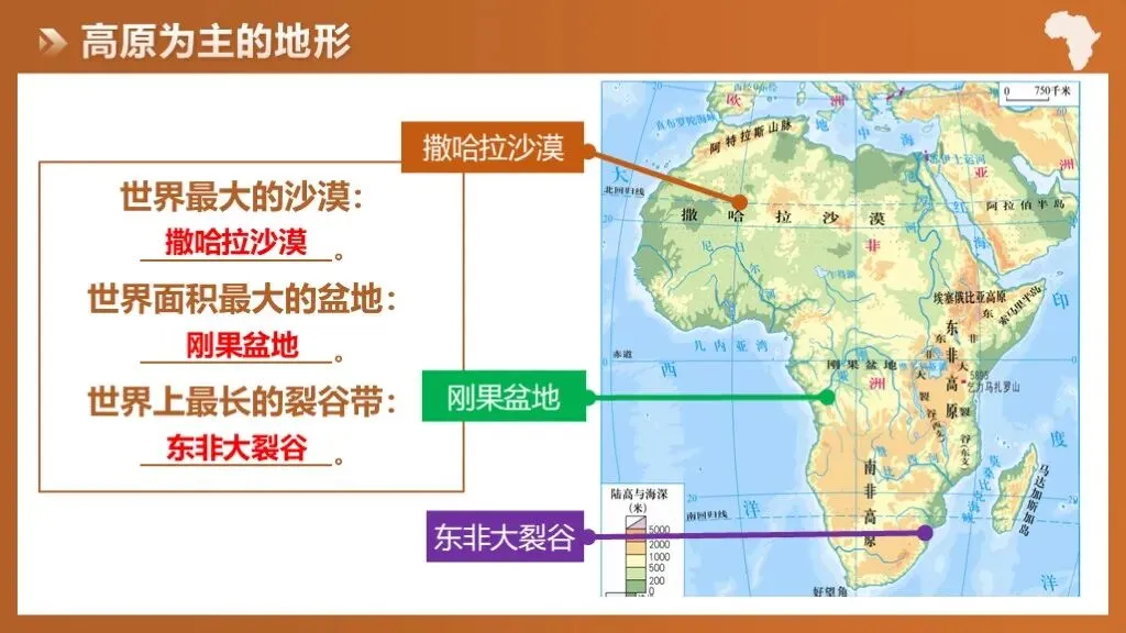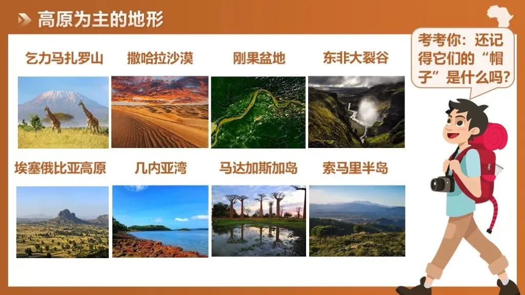 2. 掌握非洲以高原为主的地形特征,能说出主要地形区的分布及世界之最意义。