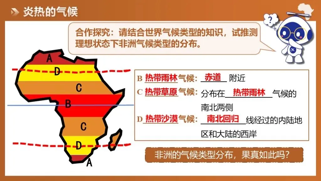 3. 理解非洲“热带大陆”的气候特征,并能结合气候类型图推测分布规律。