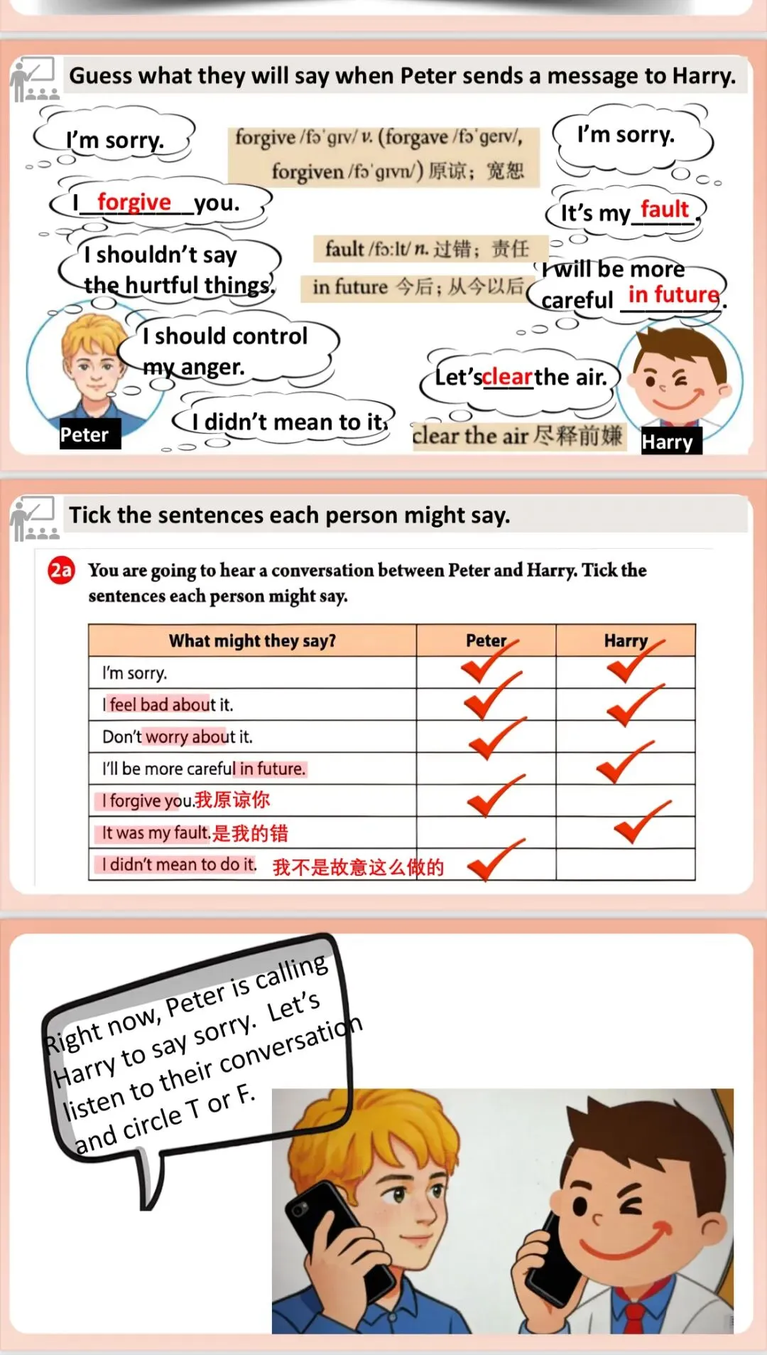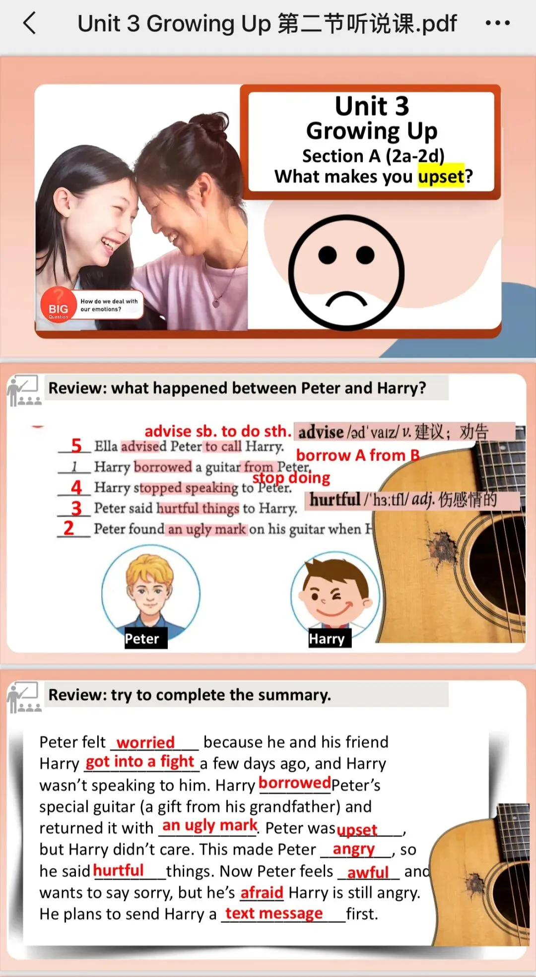 我按照学生基础还可以的情况,备课八下第三单元听说第二节,做了十页课件。