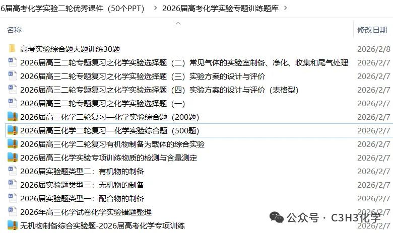 2026届二轮复习电子资料 2026届高考化学实验二轮优秀课件(50个PPT) 高考二轮反应原理优秀PPT课件集(45个PPT) 高考大题突破——工艺流程综合题知识点解读!附PDF下载! 2026届AI赋能大数据建模高考化学二轮复习用书 2026届高三化学复习选择题专练105套精美WORD,附样稿免费下载! 2026届高考选择题培优难点突破16个专题(560题)精美WORD,附样稿免费下载! 2026届福建省高三化学10道选择题专练50套word版有解析,附样稿免费下载! 理解为王化学反应原理综合题解法策略 2026届高考化学物构二轮优秀课件(40个PPT)