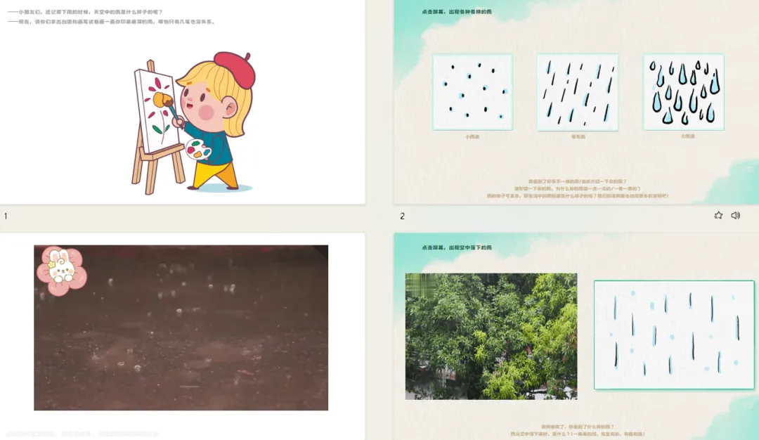 ——雨的样子可真多,那生活中的雨到底是什么样子的呢?我们到视频里去找找更多的发现吧!