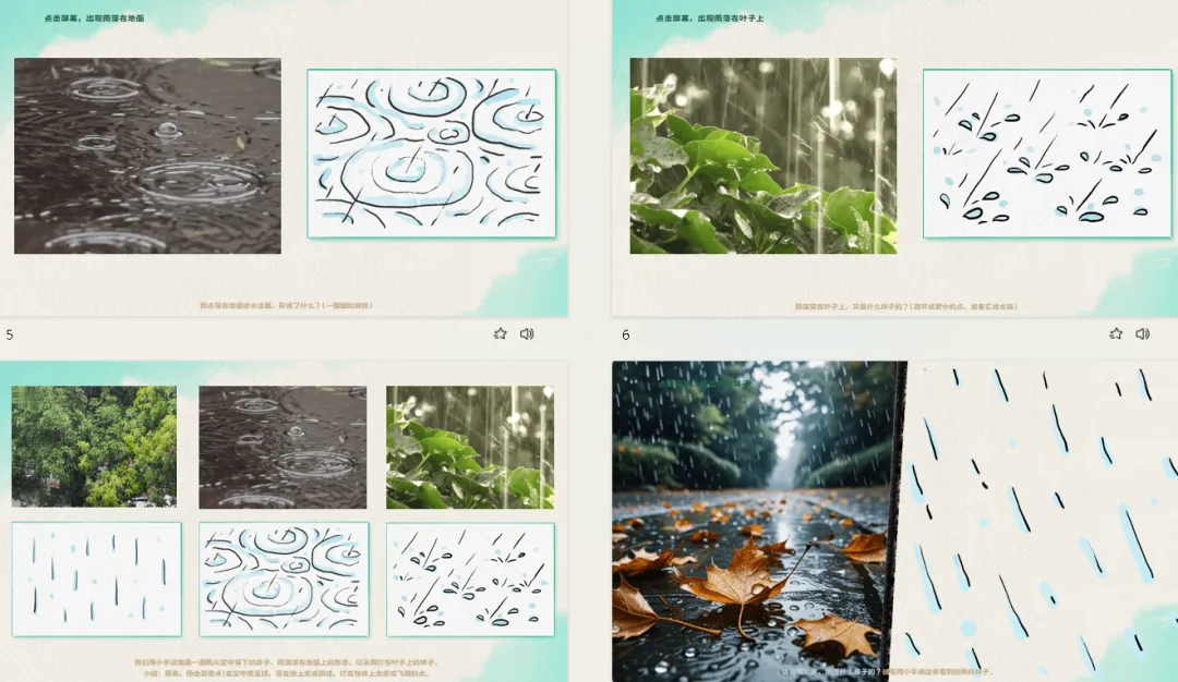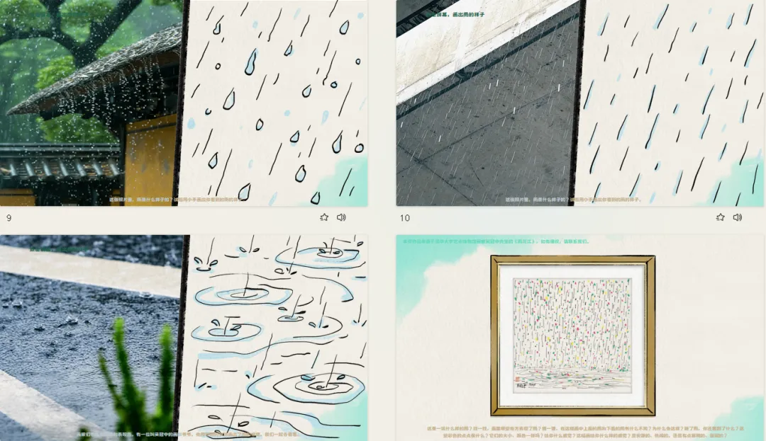 ——试着用小手画出你看到的雨的样子。
