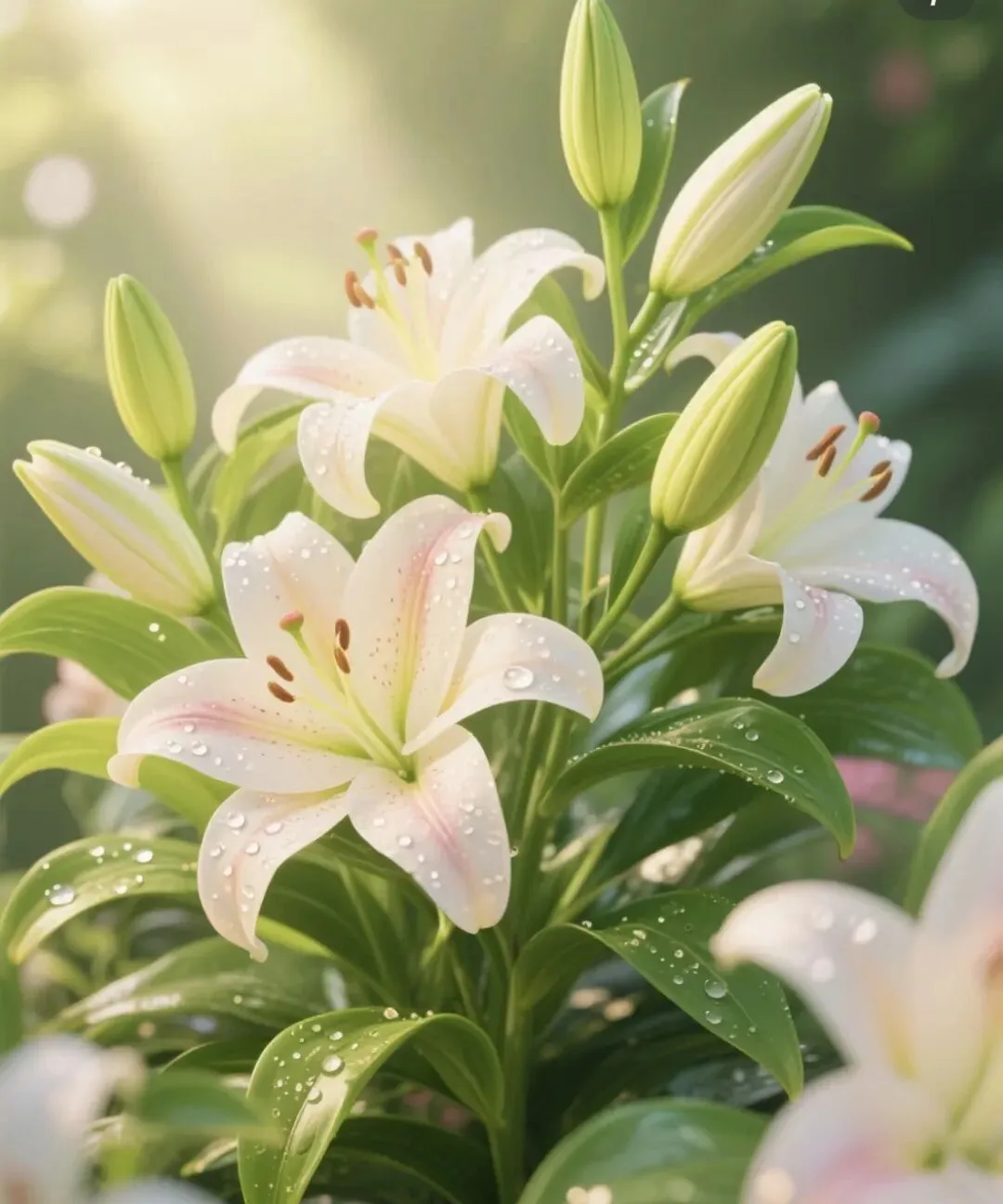 情感升华:“百合花象征着纯洁和美好,今天我们用线条画出了美丽的百合花,希望小朋友们都能像百合花一样,做一个干净、善良、优雅的人。”