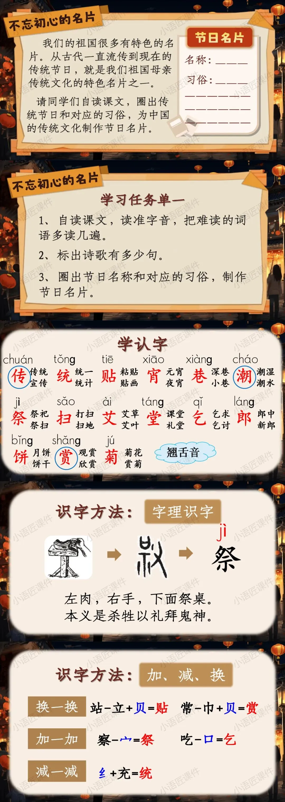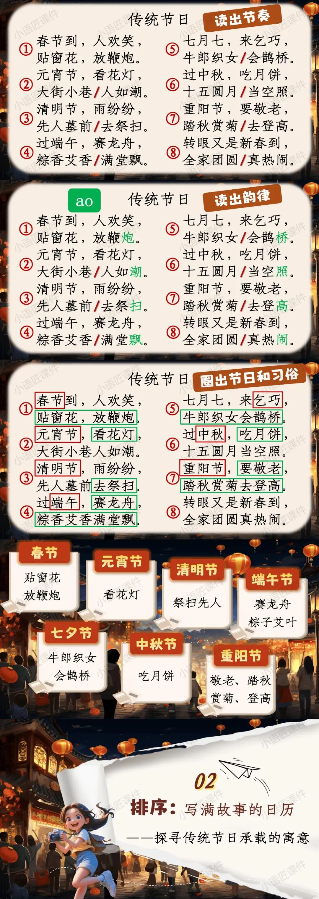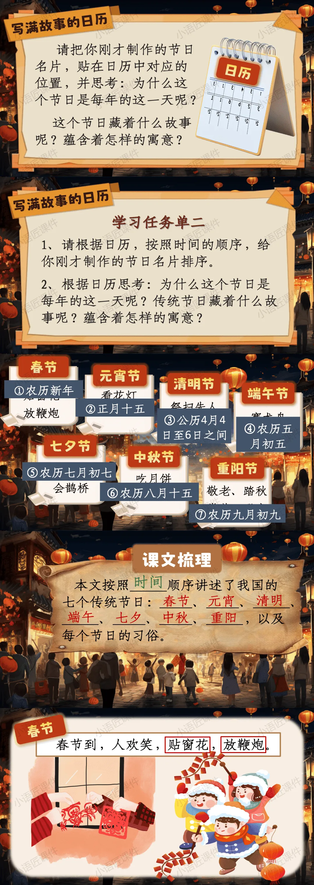 今天给大家分享的是部编人教版二年级下册识字《传统节日》的独家课件。