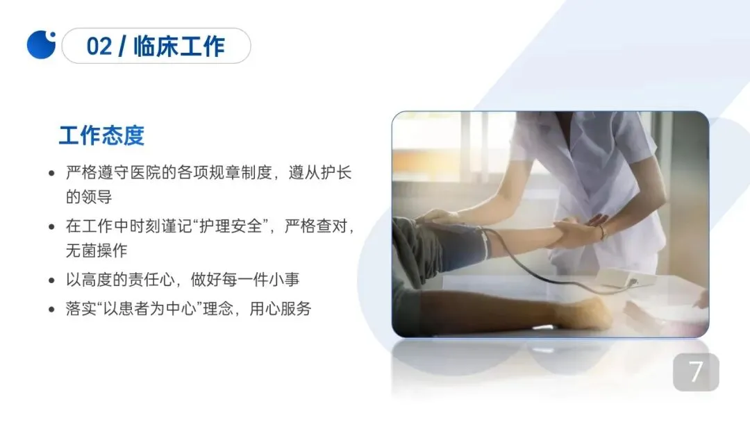 护理工作关乎患者生命安全与就医体验,本人始终坚守岗位、履职尽责,精进技能、优化服务,团结协作完成各项护理任务,今后将持续提升能力,践行护理使命。