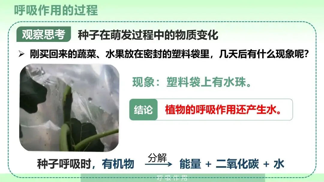 重点: 第一,通过实验现象归纳呼吸作用的过程。